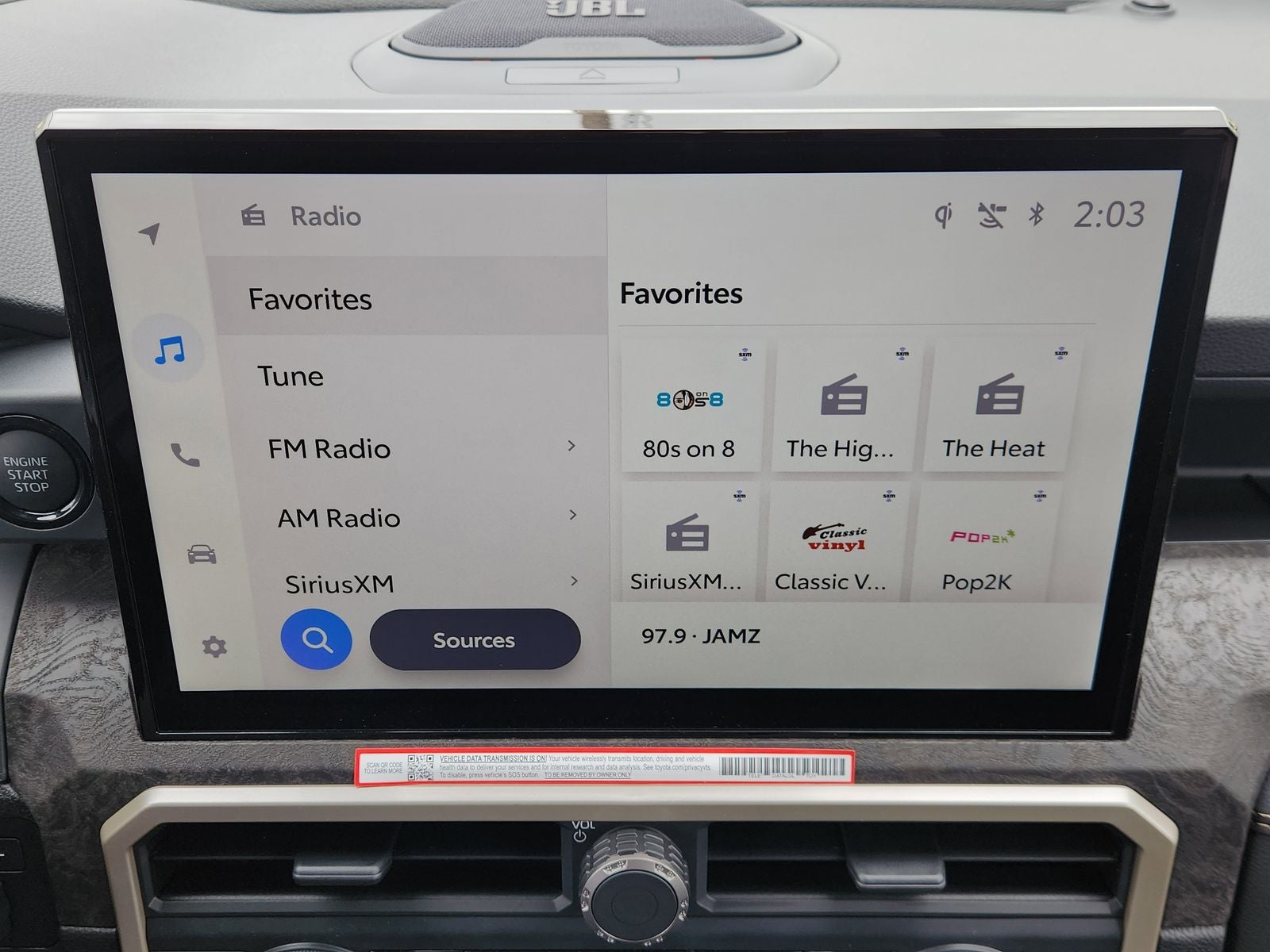 - 14-in. Toyota Audio Multimedia display with 10-speaker JBL® [jbl] audio system including JBL® FLEX [jbl_flex] portable Bluetooth®® [Bluetooth®] speaker, subwoofer and amplifier, wireless Apple CarPlay® [carplay_wireless] & Android Auto™ [android_auto_wireless] compatibility, SiriusXM® 3-month trial subscription. [siriusxm] See toyota.com/connected-services for details.
