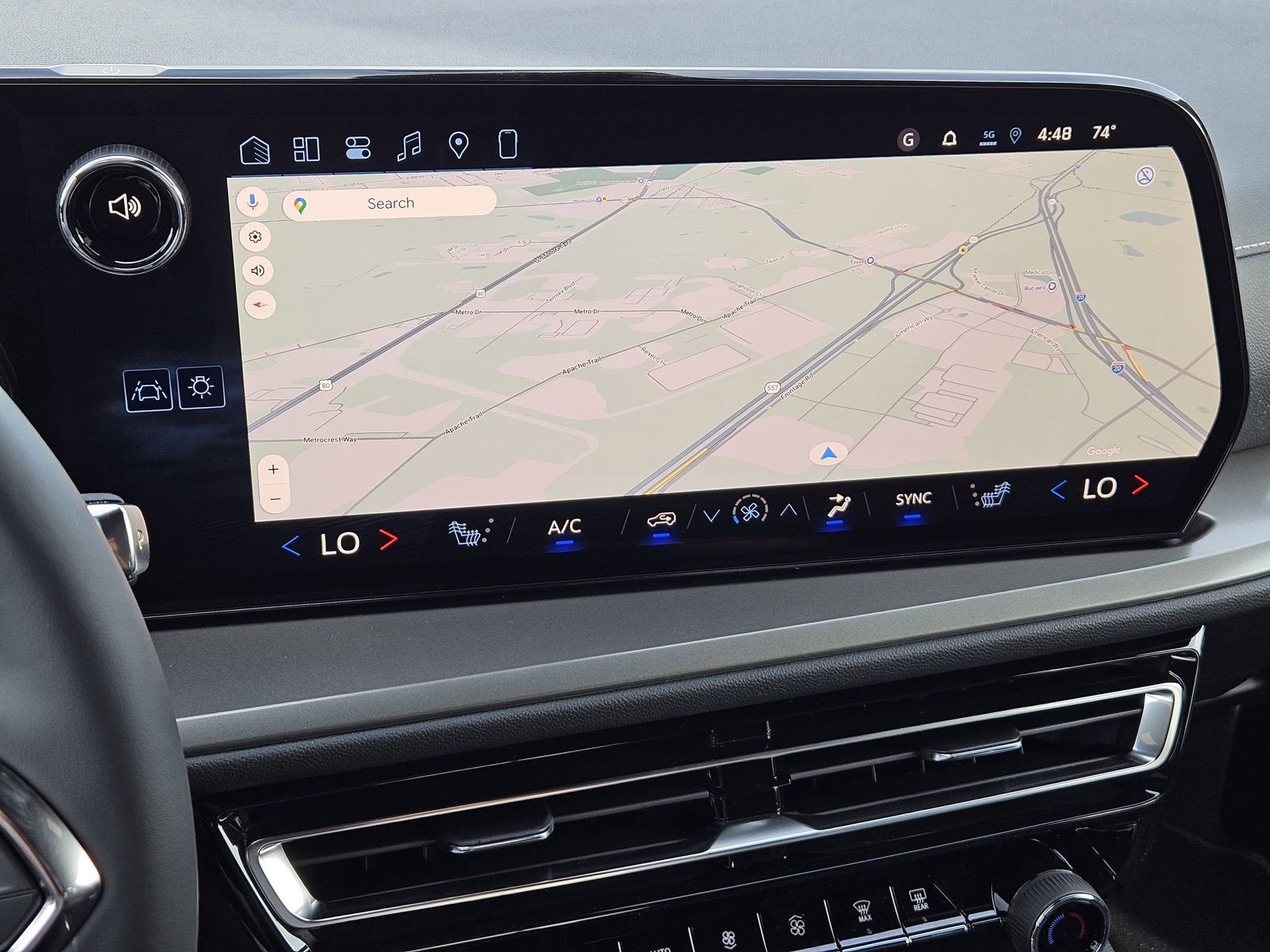 - Auxiliary controls in the rear of the cabin include air delivery mode and temperature up/down settings