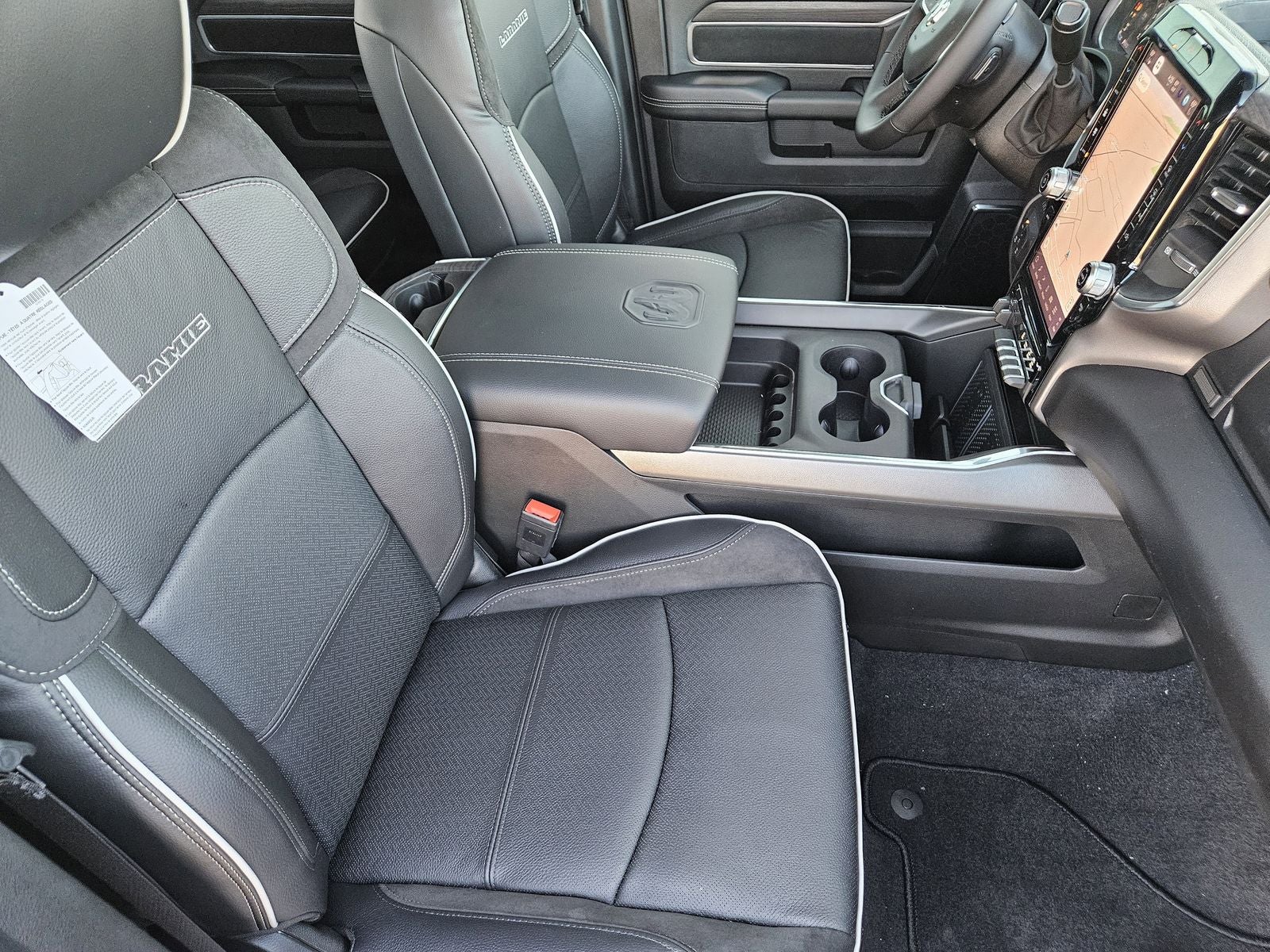 Inside, the Laramie trim focuses on comfort and connectivity. The Uconnect 5 Nav system with a 12-inch touchscreen anchors the cabin, supported by a 12-inch TFT digital cluster and 9 Alpine speakers with subwoofer. Heated front seats, heated steering wheel, dual-zone automatic temperature control, and 8-way power-adjustable front seats create a refined driving experience.