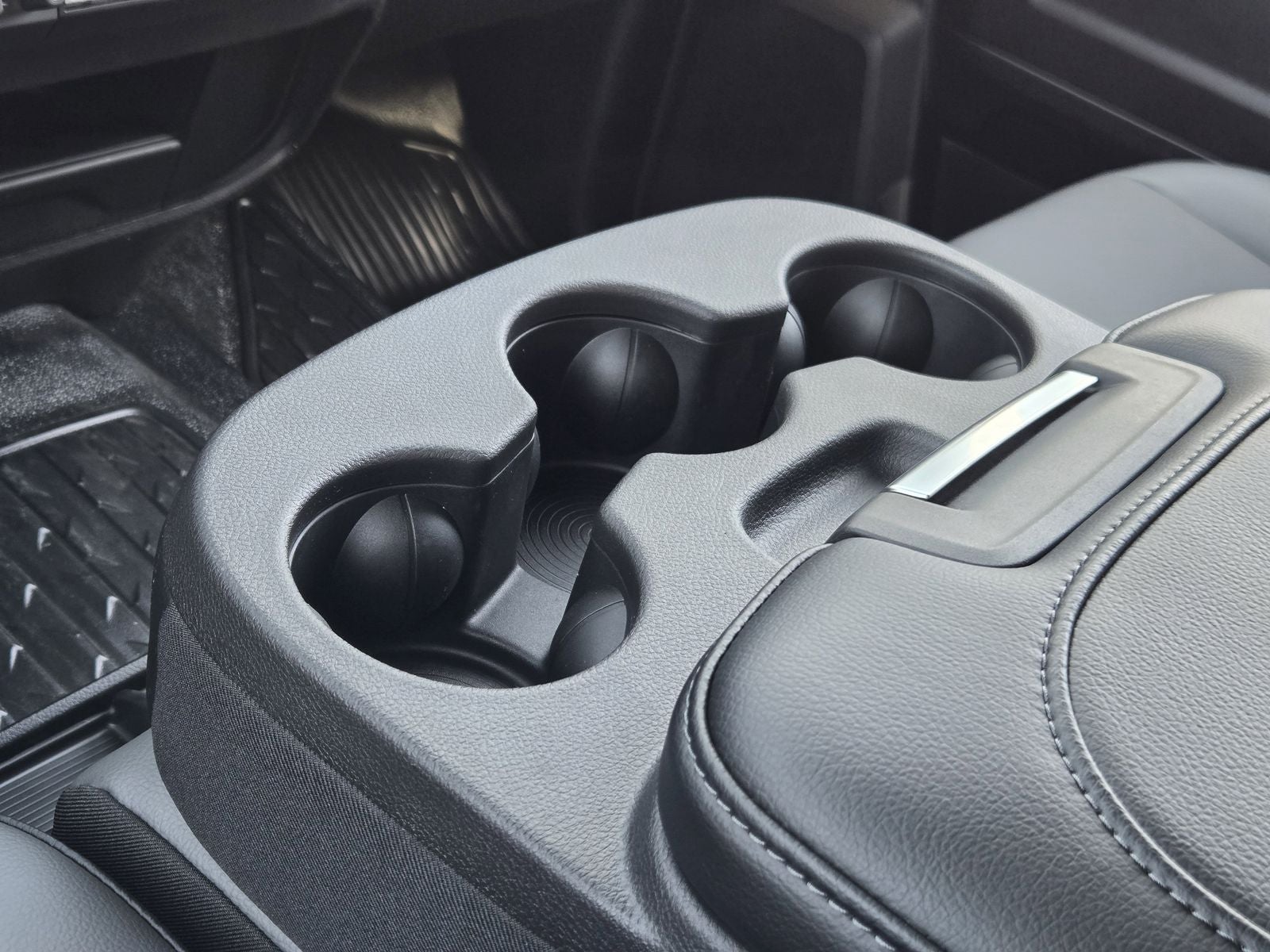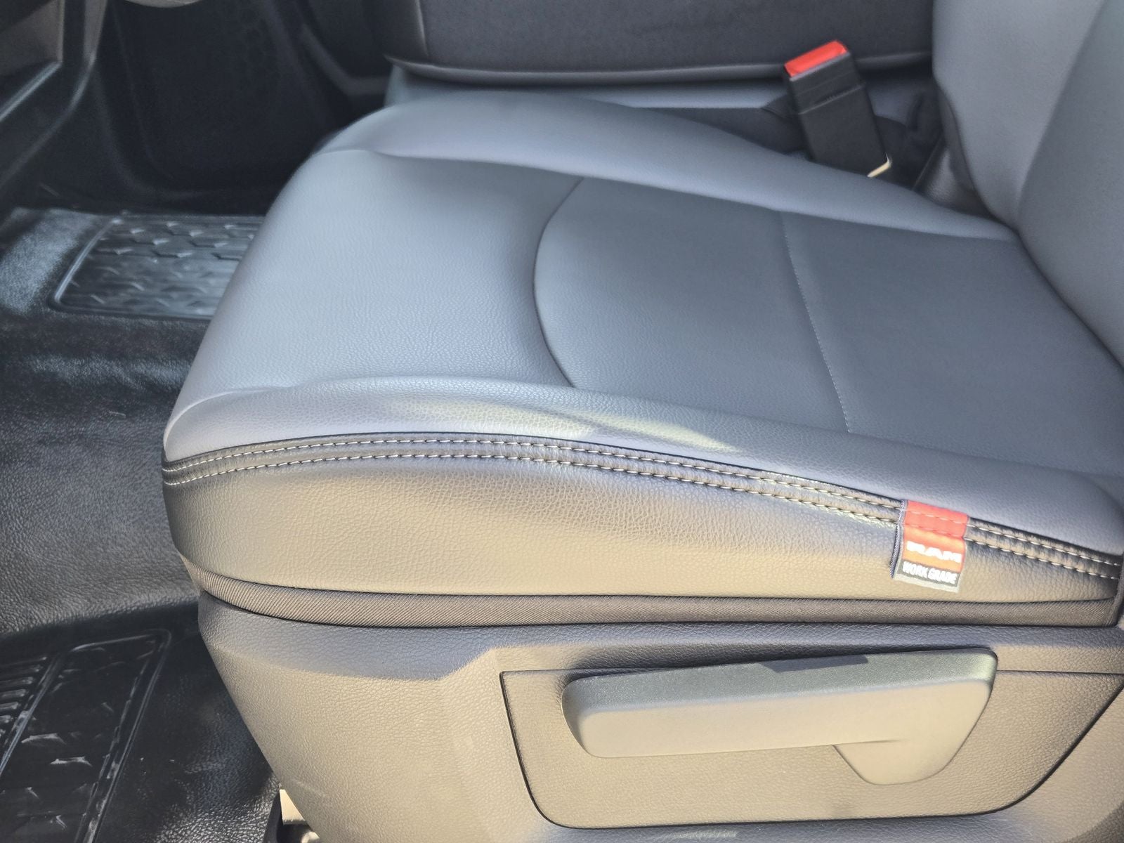 Inside, the Tradesman cabin is designed for durability and ease of use, featuring a heavy-duty vinyl 40/20/40 split bench seat, black vinyl flooring, air conditioning, and Uconnect 5 with an 8.4-inch touchscreen. Advanced safety features such as Adaptive Cruise Control with Stop, Full-Speed Forward Collision Warning with Pedestrian and Cyclist Emergency Braking, and ParkView rear back-up camera add confidence in busy work environments.