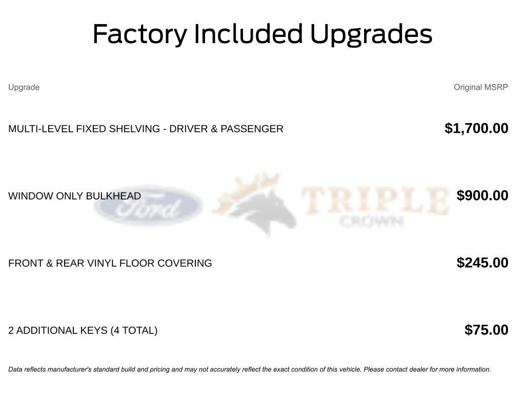 Triple Crown Ford is your trusted source for commercial vans and work-ready vehicles, offering transparent pricing, no hidden add-ons, and a team that understands business needs. From delivery fleets to service vehicles, customers across Stephenville, Weatherford, Granbury, and Fort Worth rely on us for vans that are truly Built Ford Tough.