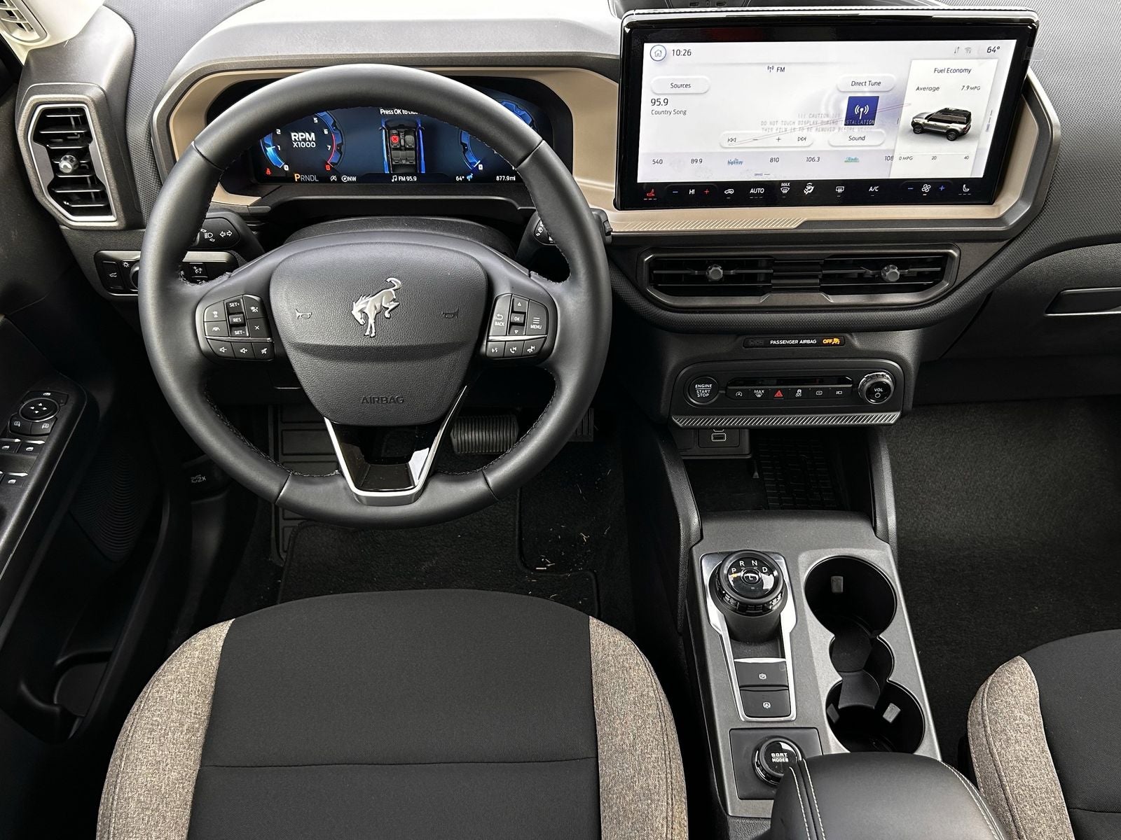 This 2025 Ford Bronco Sport Big Bend in Shadow Black comes with the following features: 1.5L EcoBoost 8-Speed Automatic 4WD Convenience Package (Front Driver/Passenger Seat Back Map Pockets, Heated 8-Way Power Driver's Seat, LED Fog Lamps, Premium Wrapped Steering Wheel, and Universal Garage Door Opener (UGDO)), Equipment Group 200A, 4-Wheel Disc Brakes, 6 Speakers, ABS brakes, Air Conditioning, Alloy wheels, AM/FM radio: SiriusXM, AM/FM Stereo, Auto High-beam Headlights, Automatic temperature control, Brake assist, Cloth w/Easy-to-Clean Front Bucket Seats, Compass, Delay-off headlights, Driver door bin, Driver vanity mirror, Dual front impact airbags, Dual front side impact airbags, Electronic Stability Control, Emergency communication system: SYNC 4 911 Assist, Four wheel independent suspension, Front anti-roll bar, Front Bucket Seats, Front Center Armrest, Front reading lights, Fully automatic headlights, Heated door mirrors, Illuminated entry, Knee airbag, Low tire pressure warning, Occupant sensing airbag, Outside temperature display, Overhead airbag, Overhead console, Panic alarm, Passenger door bin, Passenger vanity mirror, Power door mirrors, Power steering, Power windows, Radio data system, Rear anti-roll bar, Rear Parking Sensors, Rear reading lights, Rear seat center armrest, Rear window defroster, Rear window wiper, Remote keyless entry, Security system, SiriusXM, Speed control, Speed-sensing steering, Speed-Sensitive Wipers, Split folding rear seat, Steering wheel mounted audio controls, SYNC 4 w/Enhanced Voice Recognition, Tachometer, Telescoping steering wheel, Tilt steering wheel, Traction control, Trip computer, Variably intermittent wipers, and Wheels: 17 Carbonized Gray-Painted Aluminum.