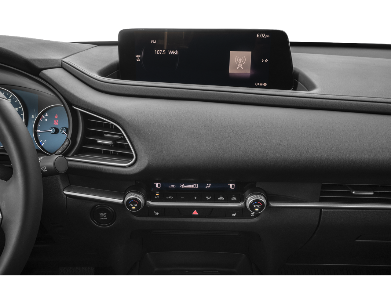 - Sistema de infoentretenimiento MAZDA CONNECT -incluye: conexión inalámbrica en el vehículo, servicios remotos (arranque del motor a distancia/bloqueo/desbloqueo de puertas a distancia/luz de emergencia a distancia), alerta del estado del vehículo, servicios de navegación (localizador de vehículos, función send to car, actualización del mapa en línea a través del PC), servicios conectados en el vehículo (reporte mecánico del vehículo, actualización en línea, notificaciones automáticas, notificación de avería, notificación de llamada a revisión), marcación automática del 911, asistencia en carretera de Mazda, sistema de infoentretenimiento con control por voz, control de mandos multifuncional, información del programa del sistema de radio datos y mensajes de texto SMS con mensaje de audio para entrega y respuesta