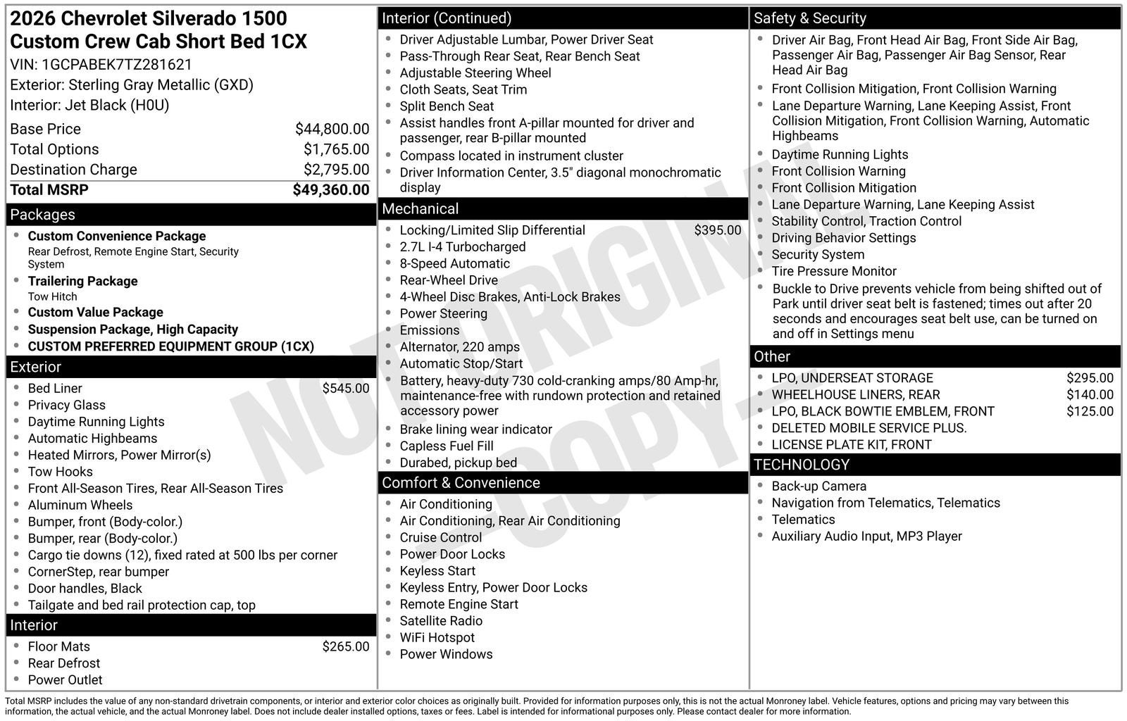 - Chevrolet Infotainment 3 System with 7" diagonal color touchscreen
