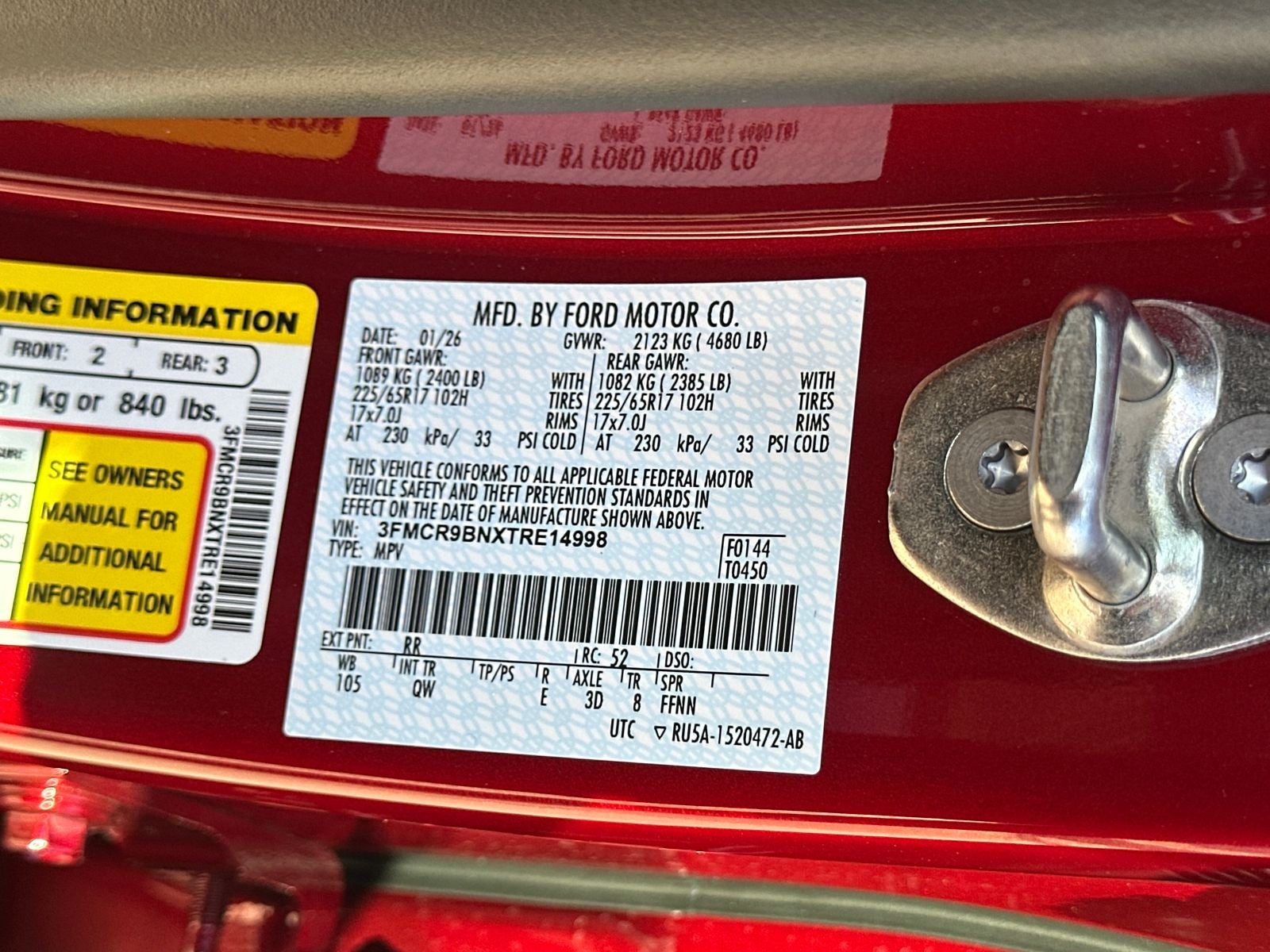 The 2026 Ford Bronco Sport Big Bend 4X4 delivers the perfect balance of everyday drivability and off-road confidence. Powered by a fuel-efficient 1.5L EcoBoost engine paired with an 8-speed automatic transmission, this Bronco Sport is engineered for versatility, traction, and comfort. Finished in Ruby Red Metallic Tinted Clearcoat with Medium Light Smoked Truffle interior, it stands out with bold style and practical capability.