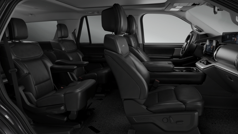 The interior of the Expedition Platinum is a sanctuary of sophistication and comfort. Indulge in the supple leather upholstery, heated and ventilated front seats, and the expansive panoramic Vista Roof, which floods the cabin with natural light. The advanced B&O sound system, with 22 speakers and a customizable sound experience, elevates your audio enjoyment to new heights.