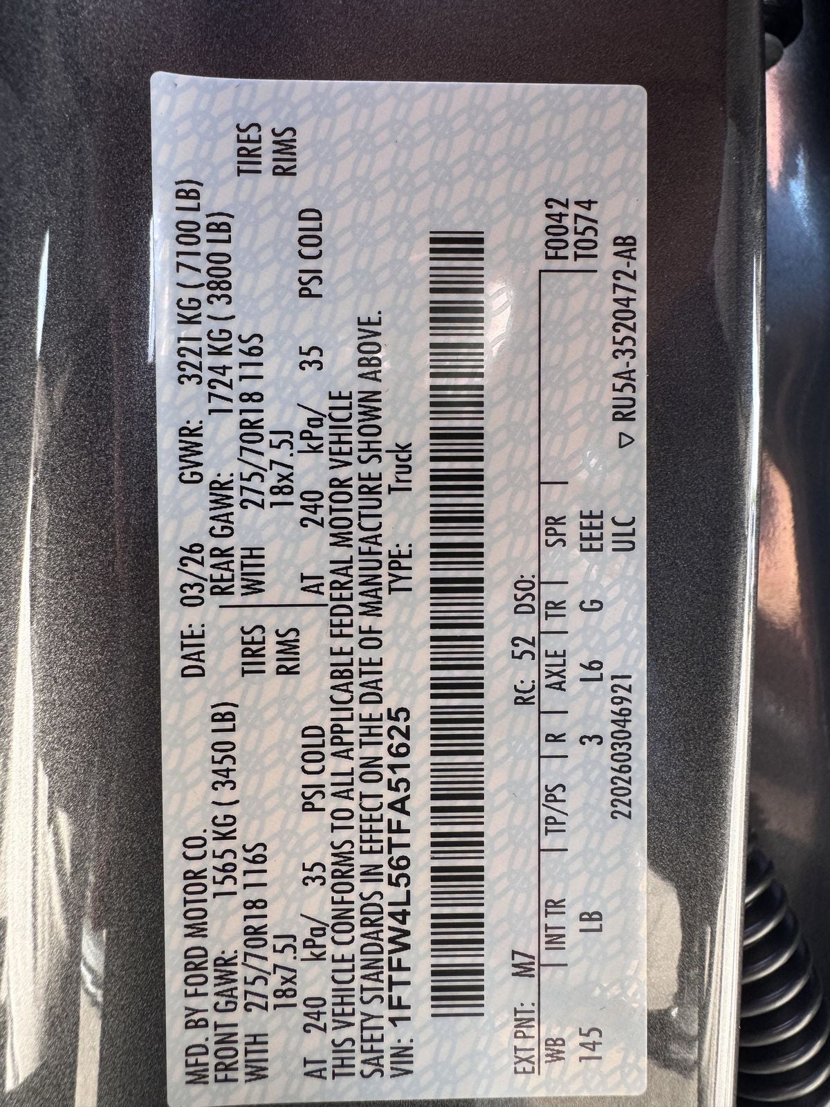 - Front Tire Size: P275/70SR18