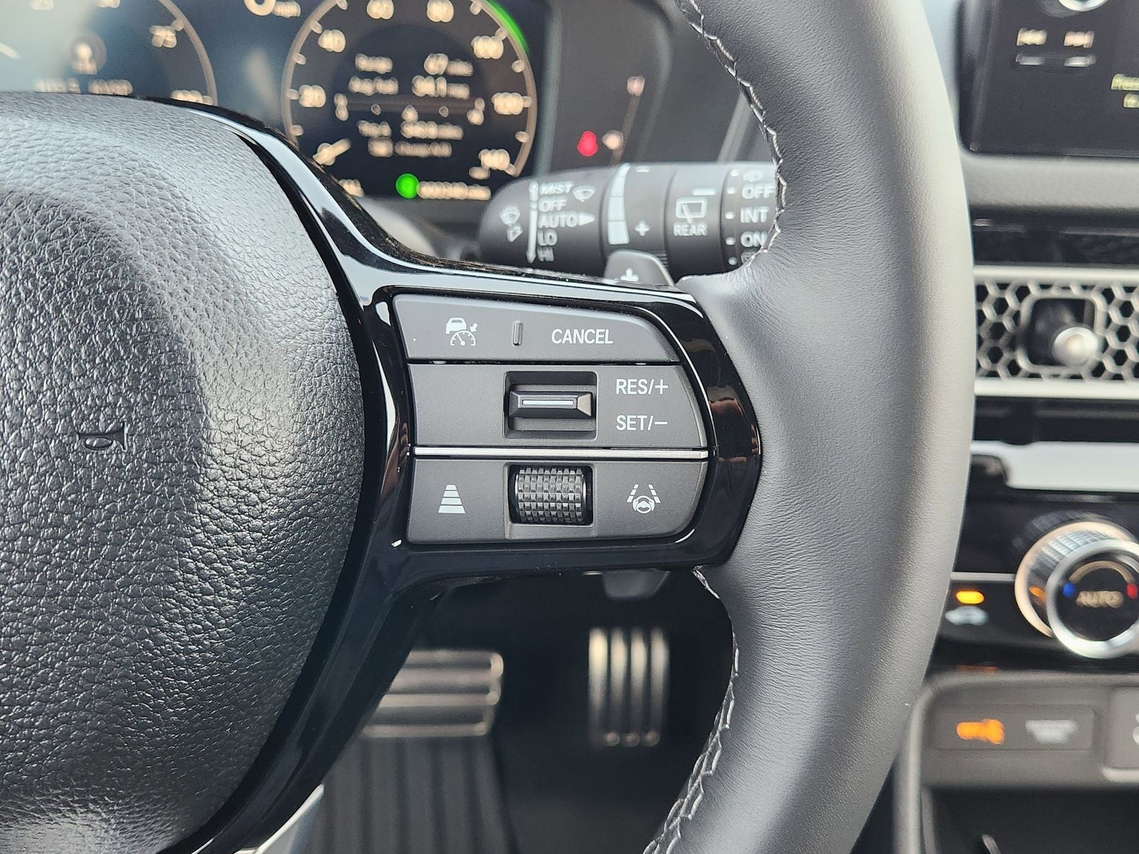 This 2026 Honda Civic Hybrid Sport Touring in Platinum White Pearl comes with the following features:12 Speakers, 4-Wheel Disc Brakes, ABS brakes, Adaptive Cruise Control: Adaptive Cruise Control (ACC) with Low-Speed Follow, Air Conditioning, Alloy wheels, AM/FM radio, Apple CarPlay/Android Auto, Auto High-beam Headlights, Auto-dimming Rear-View mirror, Automatic temperature control, Blind Spot Information (BSI) System warning, Bose Premium Sound System, Brake assist, Bumpers: body-color, Compass, Delay-off headlights, Driver door bin, Driver vanity mirror, Dual front impact airbags, Dual front side impact airbags, Electronic Stability Control, Emergency communication system: HondaLink, Exterior Parking Camera Rear, Four wheel independent suspension, Front anti-roll bar, Front Bucket Seats, Front Center Armrest, Front dual zone A/C, Front reading lights, Fully automatic headlights, Heated door mirrors, Heated Front Bucket Seats, Heated front seats, Illuminated entry, Knee airbag, Lane departure: Lane Keeping Assist System (LKAS) active, Leather Shift Knob, Leather steering wheel, Leather-Trimmed Seat Trim, Low tire pressure warning, Navigation system: Google Maps, Occupant sensing airbag, Outside temperature display, Overhead airbag, Overhead console, Panic alarm, Passenger door bin, Passenger vanity mirror, Power door mirrors, Power driver seat, Power moonroof, Power passenger seat, Power steering, Power windows, Radio data system, Rain sensing wipers, Rear anti-roll bar, Rear seat center armrest, Rear side impact airbag, Rear window defroster, Rear window wiper, Remote keyless entry, Security system, Speed control, Speed-sensing steering, Split folding rear seat, Steering wheel mounted audio controls, Tachometer, Telescoping steering wheel, Tilt steering wheel, Traction control, Trip computer, Turn signal indicator mirrors, Variably intermittent wipers, and Wheels: 18 Alloy with Matte Shark Gray Inserts.