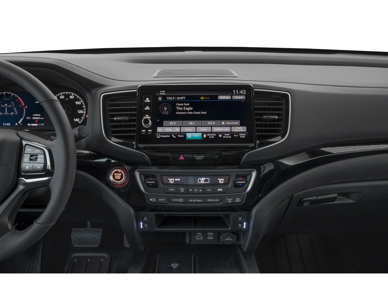 - Radio: 540-Watt Premium Audio System w/8 Speakers -inc: subwoofer, 9" color touchscreen, Bluetooth® streaming audio, Speed-Sensitive Volume Compensation (SVC), wireless Apple CarPlay/Android Auto compatibility, HD Radio and 2.5A USB-A data port in front console, HondaLink, Select HondaLink features are complimentary, 36-month complimentary trials are available for security and remote packages, A subscription is required to continue HondaLink services after the trial ends
