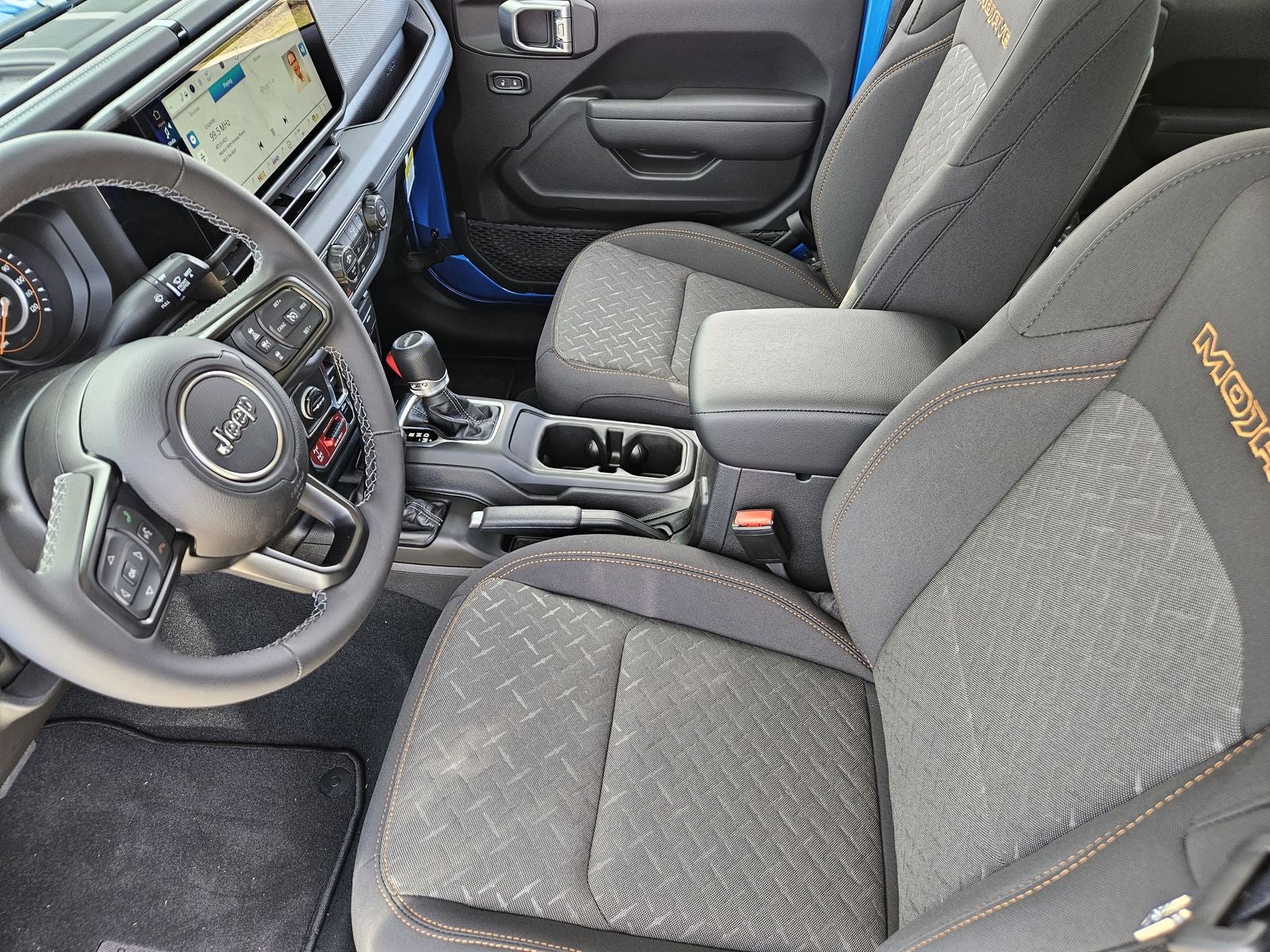 Inside, the cabin balances rugged durability with modern comfort. Premium cloth seats with sport bolsters provide support during aggressive driving, while smart storage solutions and intuitive controls keep the interior practical for daily use. Technology is centered around the Uconnect 5 system with a 12.3-inch touchscreen, giving you access to navigation, smartphone integration, and connected services.