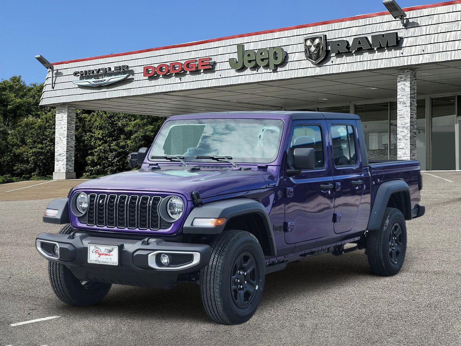 This 2026 Jeep Gladiator Sport in reign comes nicely equipped with the following features: 3.6L V6 24V VVT 8-Speed Automatic 4WD Quick Order Package 24B Sport, 110 Mph Vehicle Max Speed Calibration, 12.3 Touchscreen Display, 3.73 Rear Axle Ratio, 4-Wheel Disc Brakes, 4G LTE Wi-Fi Hot Spot, 8 Speakers, ABS brakes, Air Conditioning, Alexa Built-in, AM/FM radio: SiriusXM with 360L, Apple CarPlay, Apple CarPlay/Android Auto, Black 3-Piece Hard Top, Brake assist, Compass, Connectivity - US/Canada, Delay-off headlights, Driver door bin, Driver vanity mirror, Dual front impact airbags, Dual front side impact airbags, Electronic Stability Control, Freedom Panel Storage Bag, Front anti-roll bar, Front Bucket Seats, Front Center Armrest w/Storage, Front fog lights, Front License Plate Bracket, Front reading lights, Google Android Auto, Illuminated entry, Integrated roll-over protection, Low tire pressure warning, MOPAR All-Weather Slush Mats, MOPAR Spray in Bedliner, Normal Duty Suspension, Occupant sensing airbag, Outside temperature display, Overhead airbag, Panic alarm, ParkView Rear Back-Up Camera, Passenger door bin, Passenger vanity mirror, Power steering, Power windows, Radio data system, Radio: Uconnect 5 with 12.3 Display, Rear anti-roll bar, Rear reading lights, Rear Sliding Window, Rear Window Defroster, Remote keyless entry, Speed control, Split folding rear seat, Steering wheel mounted audio controls, Tachometer, Telescoping steering wheel, Tilt steering wheel, Traction control, Trip computer, USB Host Flip, Variably intermittent wipers, Voltmeter, and Wheels: 17 x 7.5 Black Steel Styled. Sport 3.6L V6 24V VVT 8-Speed Automatic 4WD