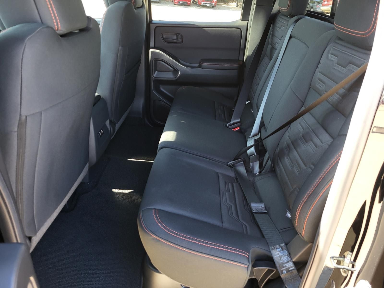 This 2026 Nissan Frontier PRO-X in Super Black comes with the following features: 3.8L DI DOHC 24V V6 9-Speed Automatic with Overdrive RWD Tow Package, 17 Painted Alloy Wheels, 3.692 Axle Ratio, 4-Wheel Disc Brakes, 6 Speakers, ABS brakes, Air Conditioning, Alloy wheels, AM/FM radio: SiriusXM, Anti-whiplash front head restraints, Auto High-beam Headlights, Automatic temperature control, Blind Spot Warning, Brake assist, Bumpers: body-color, Carpeted Floor Mats, Delay-off headlights, Driver door bin, Driver vanity mirror, Drop-In Bed Liner & Bumper Step, Dual front impact airbags, Dual front side impact airbags, Electronic Stability Control, Emergency communication system, Front anti-roll bar, Front Bucket Seats, Front Center Armrest, Front dual zone A/C, Front fog lights, Front reading lights, Front wheel independent suspension, Fully automatic headlights, Heated Front Bucket Seats, Heated steering wheel, Illuminated entry, Knee airbag, Leather steering wheel, Low tire pressure warning, Mud Flaps, Occupant sensing airbag, Off-Road Style Step Rails, Overhead airbag, Overhead console, Panic alarm, Passenger door bin, Passenger vanity mirror, Power door mirrors, Power driver seat, Power passenger seat, Power steering, Power windows, PRO Embroidered Premium Cloth Seat Trim, Radio data system, Radio: SXM/AM/FM/AUX/USB Audio System, Rear anti-roll bar, Rear seat center armrest, Rear side impact airbag, Rear step bumper, Remote keyless entry, Security system, Speed control, Speed-sensing steering, Split folding rear seat, Steering wheel mounted audio controls, Tachometer, Telescoping steering wheel, Tilt steering wheel, Traction control, Trip computer, Variably intermittent wipers, Voltmeter, and Wireless Apple CarPlay/Wireless Android Auto.