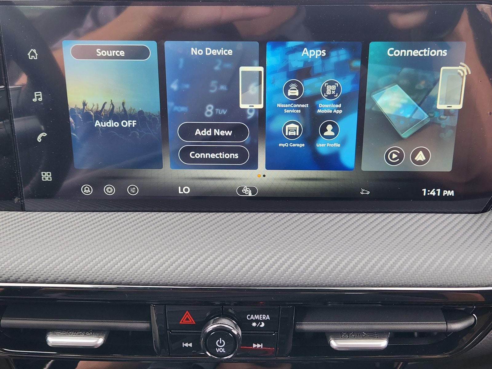 - Radio: Sistema de audio AM/FM/radio satélite SiriusXM -incluye: pantalla táctil a color de 12.3 plg con 6 altavoces, sistema de teléfono a manos libres Bluetooth, transmisión de audio a través de Bluetooth, NissanConnect Services con tecnología de SiriusXM con Apple CarPlay inalámbrico, Android Auto inalámbrico, asistente de mensajes de texto Siri Eyes Free y manos libres, audio y Bluetooth interruptores en el volante y punto de acceso Wi-Fi