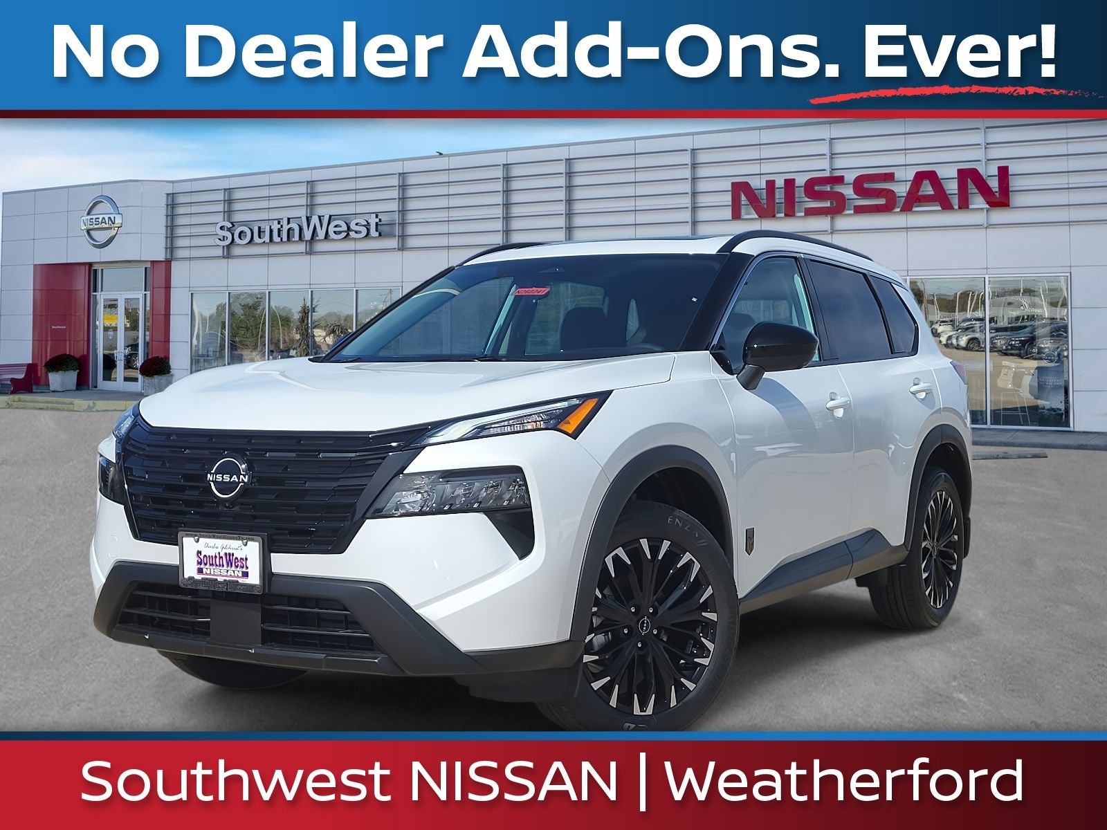 Southwest Nissan – Trusted Nissan Dealer Near Dallas-Fort Worth Southwest Nissan in Weatherford, TX proudly serves Fort Worth, Arlington, Granbury, Aledo, Mineral Wells, and surrounding Texas communities—plus nearby Oklahoma. We offer: Transparent, No-Hassle Pricing – No hidden fees. No market adjustments on new Nissans. Top Trade-In Value – Competitive offers, even if you don’t buy from us. Relaxed Buying Experience – Small-town feel with big-city deals. Whether you're shopping for a new Nissan Rogue, Altima, Frontier, or a quality used vehicle, Southwest Nissan is your destination for honest pricing and unmatched service. Visit Southwest Nissan in Weatherford today and experience a better way to buy a car. Price includes: $3500 - Nissan Customer Cash. Exp. 03/31/2026