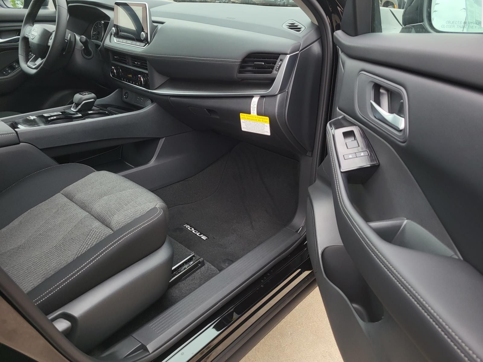 This 2026 Nissan Rogue SV in Super Black comes with the following features: 1.5L DOHC CVT with Xtronic FWD 4-Wheel Disc Brakes, 6 Speakers, ABS brakes, Air Conditioning, Alloy wheels, AM/FM radio, Apple CarPlay/Android Auto, Auto High-beam Headlights, Automatic temperature control, Black Splash Guards (set of 4), Brake assist, Bumpers: body-color, Chrome Rear Bumper Protector, Cloth Seat Trim with Patterned Inserts, Delay-off headlights, Driver door bin, Driver vanity mirror, Dual front impact airbags, Dual front side impact airbags, Electronic Stability Control, Emergency communication system: NissanConnect Services, First Aid Kit, Floor Mats with 1-Piece Cargo Area Protector, Four wheel independent suspension, Frameless Rearview Mirror with Universal Remote, Front anti-roll bar, Front Bucket Seats, Front Center Armrest, Front dual zone A/C, Front reading lights, Fully automatic headlights, Heated door mirrors, Illuminated entry, Knee airbag, Low tire pressure warning, Occupant sensing airbag, Outside temperature display, Overhead airbag, Overhead console, Panic alarm, Passenger door bin, Passenger vanity mirror, Power door mirrors, Power driver seat, Power Liftgate, Power steering, Power windows, Radio data system, Radio: AM/FM NissanConnect, Rear anti-roll bar, Rear seat center armrest, Rear side impact airbag, Rear window defroster, Rear window wiper, Remote keyless entry, Speed control, Speed-sensing steering, Speed-Sensitive Wipers, Split folding rear seat, Spoiler, Steering wheel mounted audio controls, Tachometer, Telescoping steering wheel, Tilt steering wheel, Traction control, Trip computer, and Variably intermittent wipers.