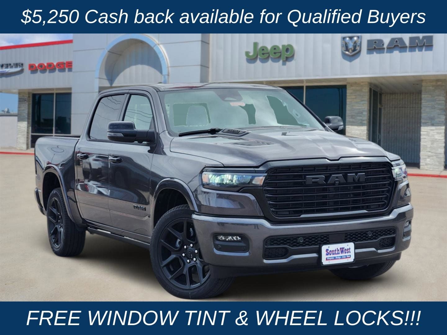 This 2026 Ram 1500 Laramie is more than just a truck – it's a statement of refined capability and uncompromising luxury. Experience the difference for yourself by scheduling a test drive at our dealership. We're confident this exceptional vehicle will exceed your expectations and become the centerpiece of your driving experience. Price includes: $1000 - 2026 Southwest BC State of Texas Regional Bonus Cash . Exp. 04/30/2026 $3500 - 2026 National Retail Bonus Cash . Exp. 04/30/2026 $750 - 2026 Southwest BC Retail Bonus Cash . Exp. 04/30/2026