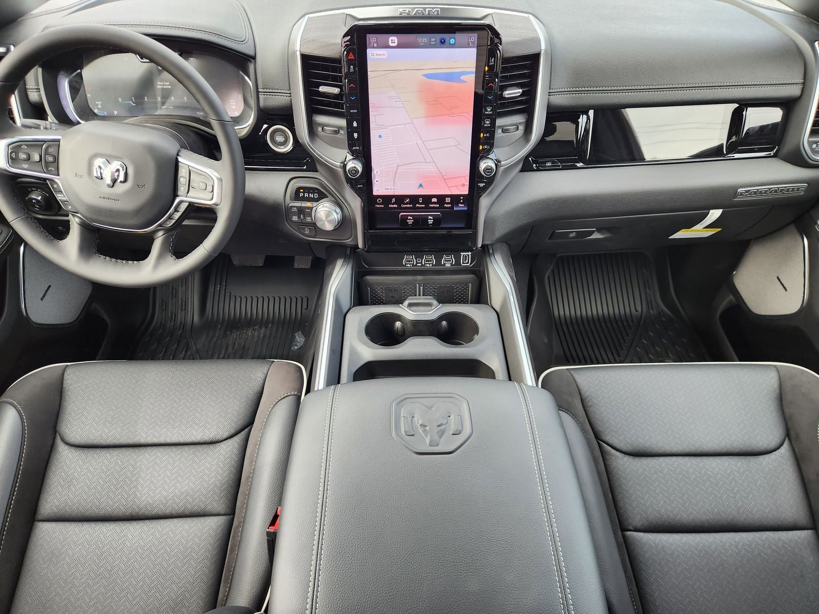 Comfort and style come together in the well-appointed interior, featuring leather-trimmed bucket seats with heating and ventilation, a heated steering wheel, and a 12-inch digital cluster display. The Laramie's advanced safety technologies, including ParkView Rear Back-Up Camera, Electronic Stability Control, and Blind Spot Monitoring, provide added peace of mind on the road.