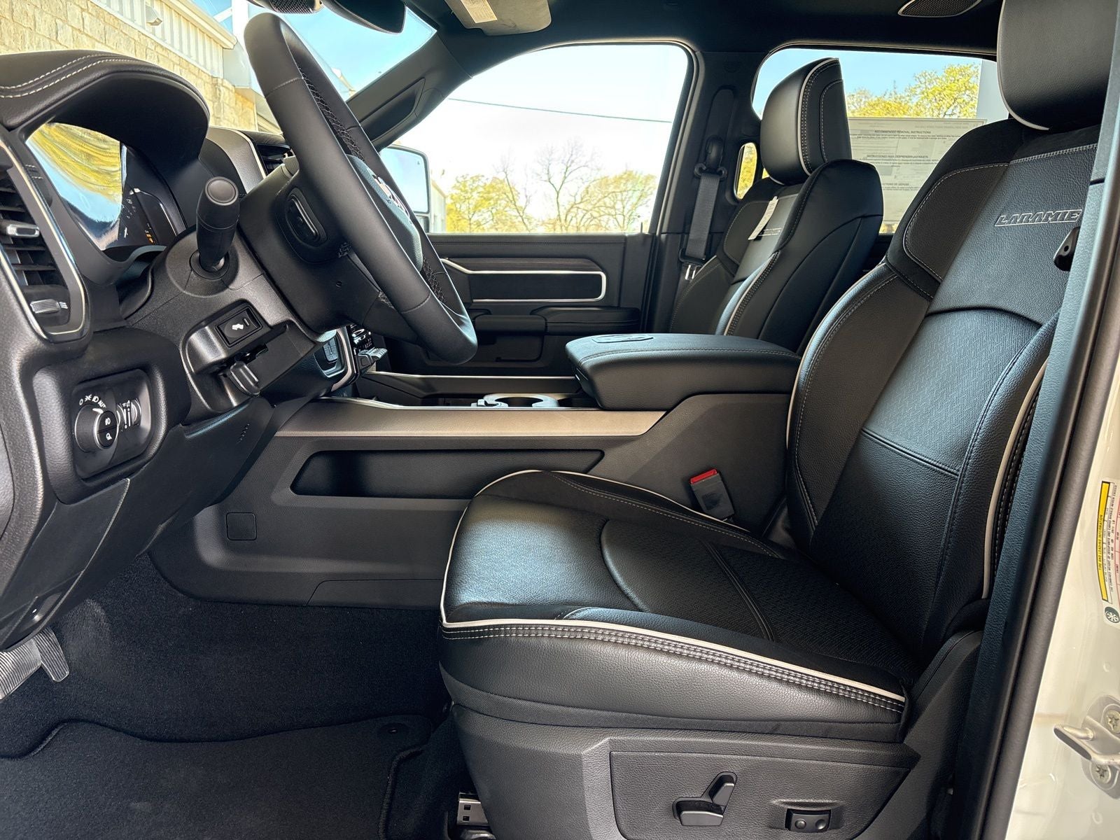 The Laramie's interior is a masterclass in luxury and convenience. Indulge in the comfort of premium leather-trimmed bucket seats with ventilation, while enjoying the convenience of a dual wireless charging pad and a memory system that remembers your preferred settings for the driver's seat, mirrors, and pedals. Stay connected and informed with the Uconnect 5 Navigation system and its 12-inch display, which seamlessly integrates with your smartphone via Apple CarPlay and Android Auto.