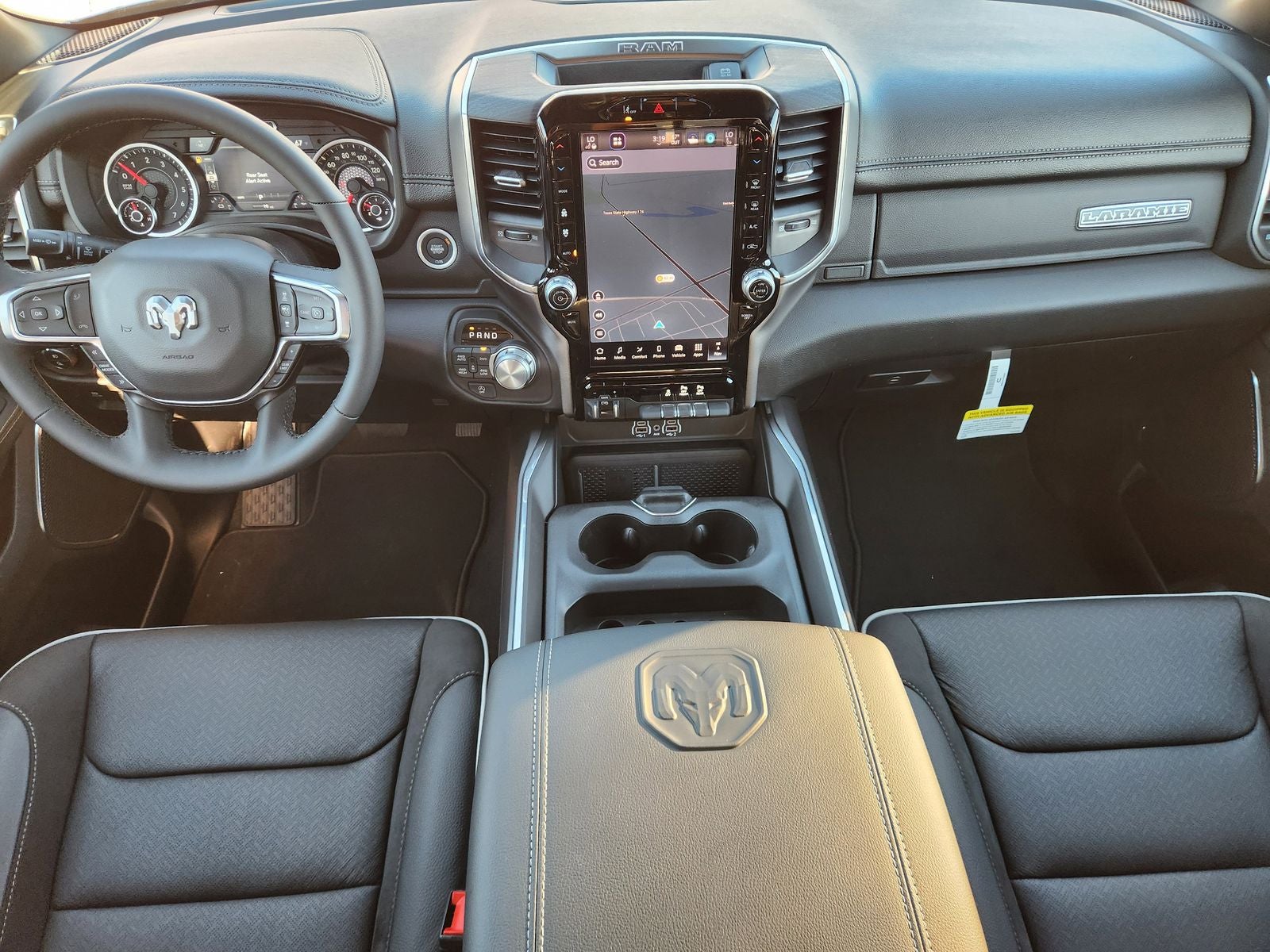 Step inside and be captivated by the Laramie's luxurious cabin, featuring premium leather-trimmed bucket seats, a heated steering wheel, and a 12-inch Uconnect 5 navigation display. Indulge in the convenience of dual-zone automatic climate control, remote keyless entry, and a suite of advanced safety technologies, including ParkView rear backup camera and Electronic Stability Control.