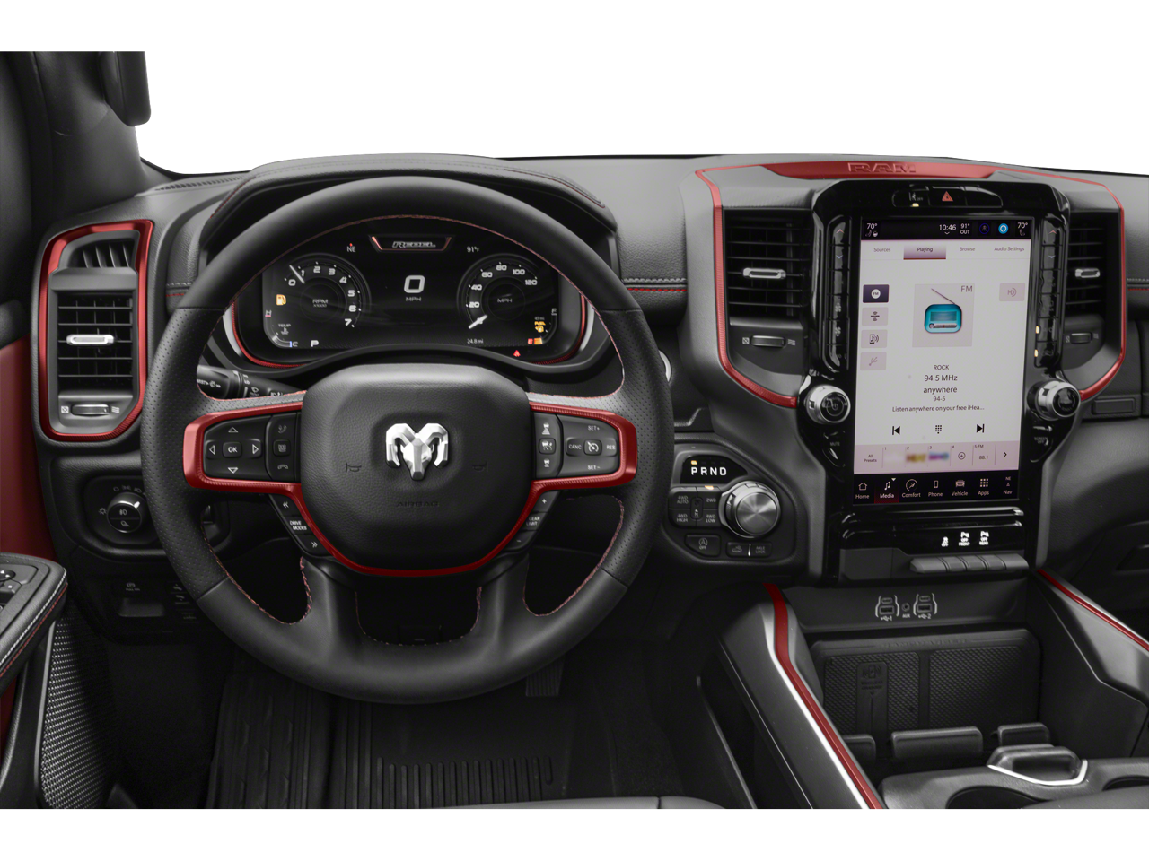 This 2026 Ram 1500 Rebel comes nicely equipped with the following Quick Order Package 21W Rebel, Rebel Level 1 Equipment Group (Auto Power-Folding Mirrors, Auto-Dimming Exterior Driver Mirror, Black Exterior Mirrors, Black Premium Power Mirrors, Convex Wide-Angle Exterior Mirror Insert, Exterior Mirrors Courtesy Lamps, Exterior Mirrors with Heating Element, Exterior Mirrors with Supplemental Signals, Power Adjustable Pedals, Rear Window Defroster, Remote Tailgate Release, and Wireless Charging Pad), 10 Speakers, 3.92 Rear Axle Ratio, 4 Way Front Headrests, 4-Wheel Disc Brakes, 4G LTE Wi-Fi Hot Spot, ABS brakes, Active Noise Control System, Air Conditioning, Alloy wheels, AM/FM radio: SiriusXM with 360L, Apple CarPlay, Apple CarPlay/Android Auto, Auto High-beam Headlights, Auto-dimming Rear-View mirror, Automatic temperature control, Brake assist, Bucket Seats, Cloth/Vinyl Bucket Seats, Compass, Connected Travel and Traffic Services, Connectivity - US/Canada, Delay-off headlights, Disassociated Touchscreen Display, Driver door bin, Driver vanity mirror, Dual front impact airbags, Dual front side impact airbags, Electronic Stability Control, Front anti-roll bar, Front Bucket Seats, Front Center Armrest w/Storage, Front dual zone A/C, Front fog lights, Front License Plate Bracket, Front reading lights, Front Seat Back Map Pockets, Front wheel independent suspension, Full Length Upgraded Floor Console, Fully automatic headlights, Garage door transmitter, Global Telematics Box Module, Google Android Auto, GPS Antenna Input, GPS Navigation, HD Radio, Heated door mirrors, Heated Front Seats, Heated front seats, Heated Steering Wheel, Heated steering wheel, Illuminated entry, Integrated Center Stack Radio, Integrated Voice Command with Bluetooth®, Leather steering wheel, Low tire pressure warning, Manual Folding Exterior Mirrors, Navigation System, Occupant sensing airbag, Off-Road Information Pages, Outside temperature display, Overhead airbag, Overhead console, Panic alarm, ParkView Rear Back-Up Camera, Passenger door bin, Passenger vanity mirror, Power 2-Way Driver Lumbar Adjust, Power Adjust 8-Way Driver Seat, Power door mirrors, Power driver seat, Power steering, Power windows, Radio data system, Radio: Uconnect 5 Navigation with 12.0 Display, Rear 60/40 Folding Seat, Rear anti-roll bar, Rear seat center armrest, Rear step bumper, Remote keyless entry, SiriusXM Radio Service, SiriusXM with 360L, Speed control, Split folding rear seat, Steering wheel mounted audio controls, Tachometer, Telescoping steering wheel, Tilt steering wheel, Traction control, Trailer Brake Control, Trip computer, USB Host Flip, Variably intermittent wipers, Voltmeter, and Wheels: 18 x 8.0 Painted Mid-Gloss Black.