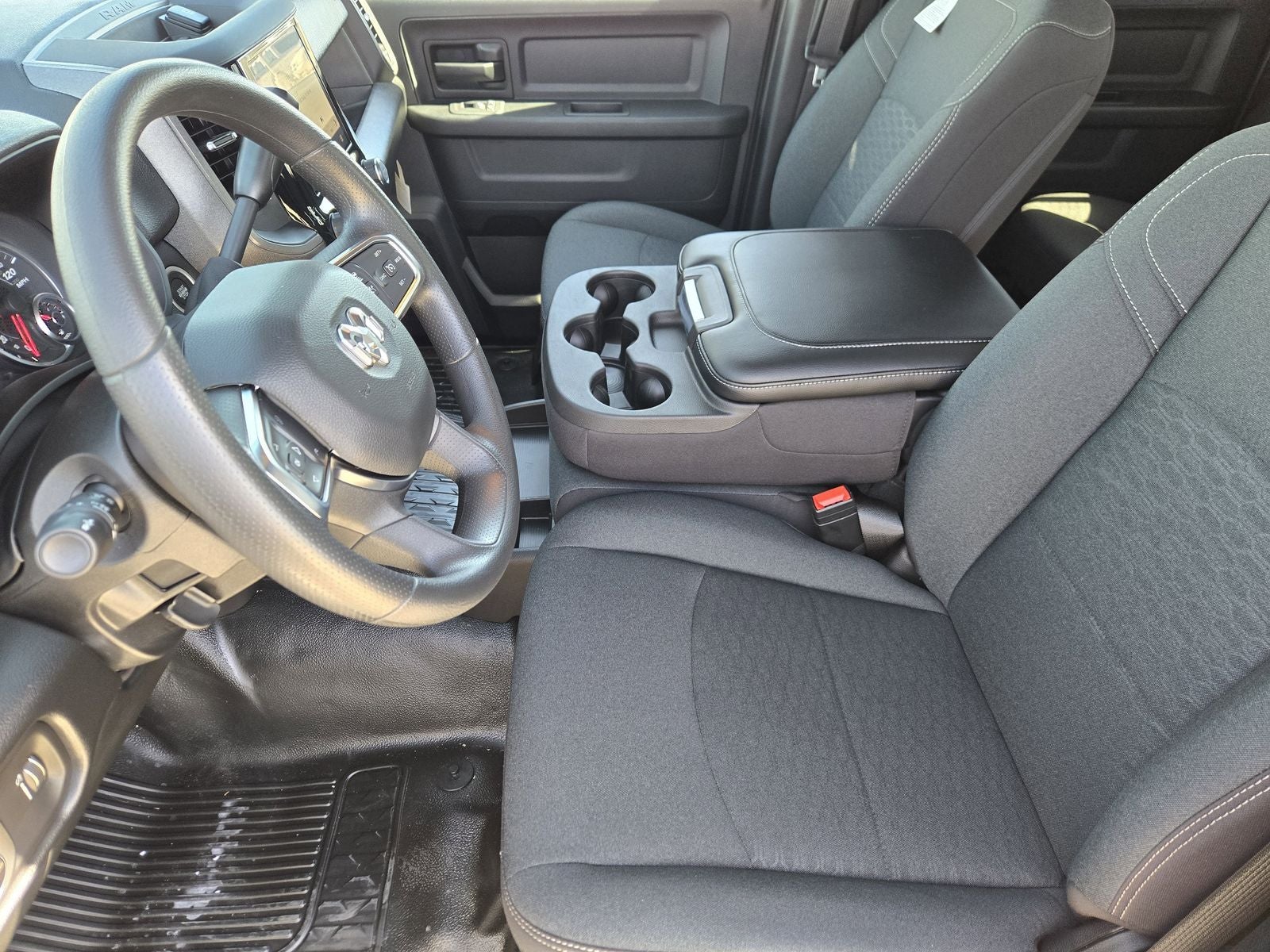 Inside the Crew Cab, the Tradesman trim focuses on function and durability. A cloth 40/20/40 bench seat, black vinyl flooring, auxiliary switches, and Uconnect 5 with an 8.4-inch touchscreen provide a practical, easy-to-maintain workspace. Modern safety technologies such as Adaptive Cruise Control with Stop, Forward Collision Warning Plus, and Pedestrian/Cyclist Emergency Braking help support confident operation on the road and at the jobsite.