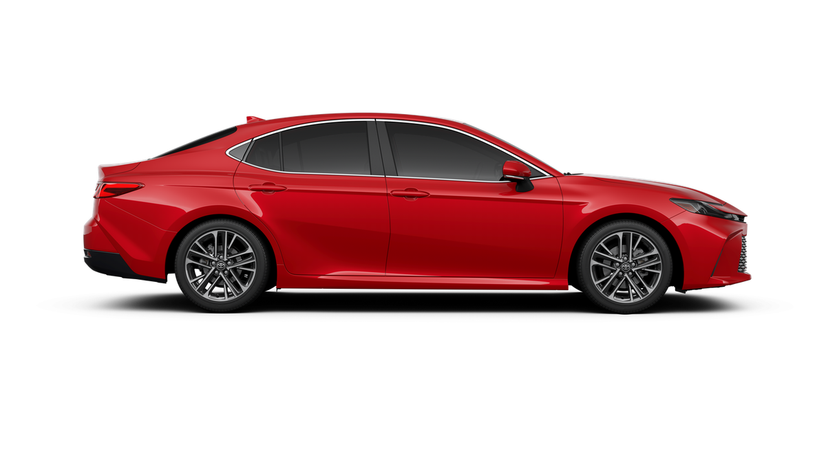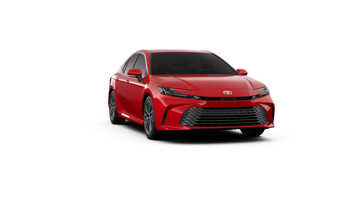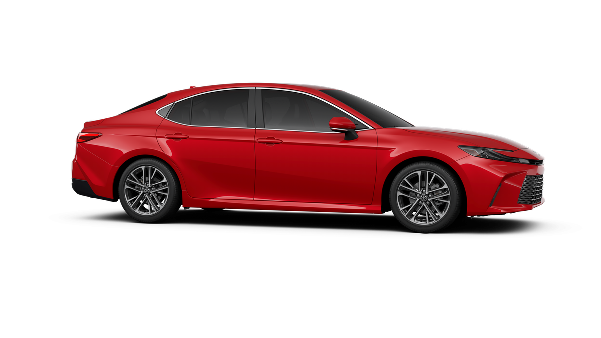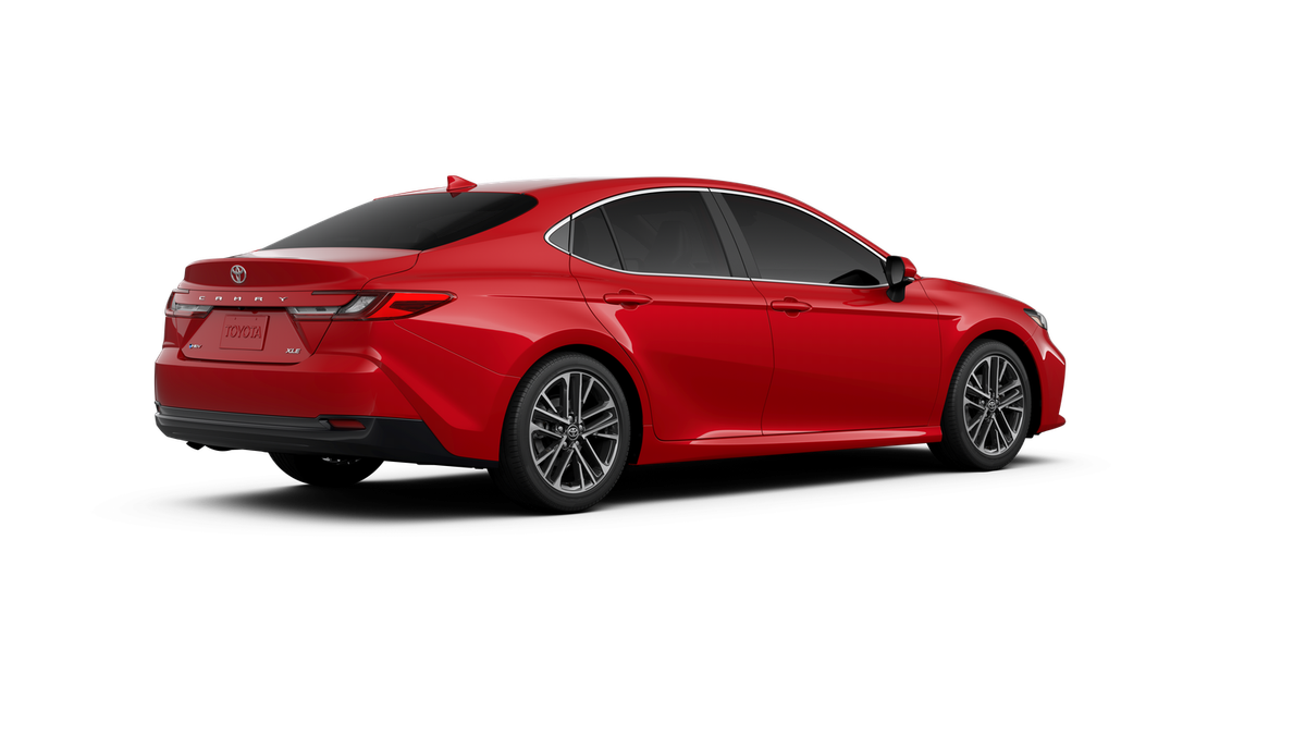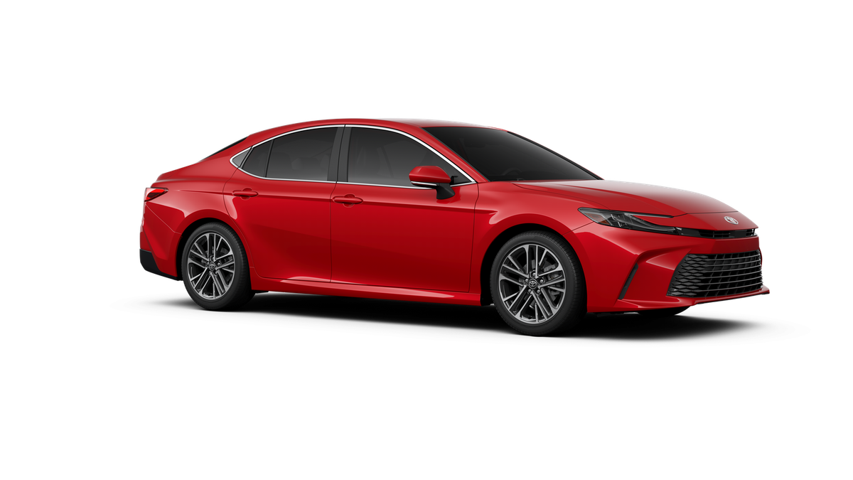 This 2026 Toyota Camry XLE in Red comes with the following features: 2.5L 4-Cylinder 16V DOHC eCVT FWD Leather, 4-Wheel Disc Brakes, 6 Speakers, ABS brakes, Air Conditioning, Alloy wheels, AM/FM radio: SiriusXM, Apple CarPlay/Android Auto, Auto High-beam Headlights, Auto-dimming Rear-View mirror, Automatic temperature control, Brake assist, Bumpers: body-color, Delay-off headlights, Driver door bin, Driver vanity mirror, Dual front impact airbags, Dual front side impact airbags, Electronic Stability Control, Emergency communication system: Safety Connect (5-year trial), Exterior Parking Camera Rear, Four wheel independent suspension, Front anti-roll bar, Front Bucket Seats, Front Center Armrest, Front dual zone A/C, Front reading lights, Fully automatic headlights, Garage door transmitter: HomeLink, Heated door mirrors, Heated Front Seats, Heated front seats, Heated steering wheel, Illuminated entry, Knee airbag, Leather and Dinamica Microfiber Seat Trim, Leather Shift Knob, Leather steering wheel, Low tire pressure warning, Navigation system: Drive Connect (1 year trial) includes Cloud Navigation with real time traffic and Google POI, Occupant sensing airbag, Outside temperature display, Overhead airbag, Overhead console, Panic alarm, Passenger door bin, Passenger vanity mirror, Power door mirrors, Power driver seat, Power passenger seat, Power steering, Power windows, Radio data system, Radio: 12.3 Toyota Multimedia Audio, Rear anti-roll bar, Rear reading lights, Rear seat center armrest, Rear window defroster, Remote keyless entry, Security system, Speed control, Speed-sensing steering, Split folding rear seat, Steering wheel mounted audio controls, Telescoping steering wheel, Tilt steering wheel, Traction control, Trip computer, Turn signal indicator mirrors, Variably intermittent wipers, and Wheels: 18 2-Tone Multi-Spoke Machined and Black Finished. 48/47 City/Highway MPG