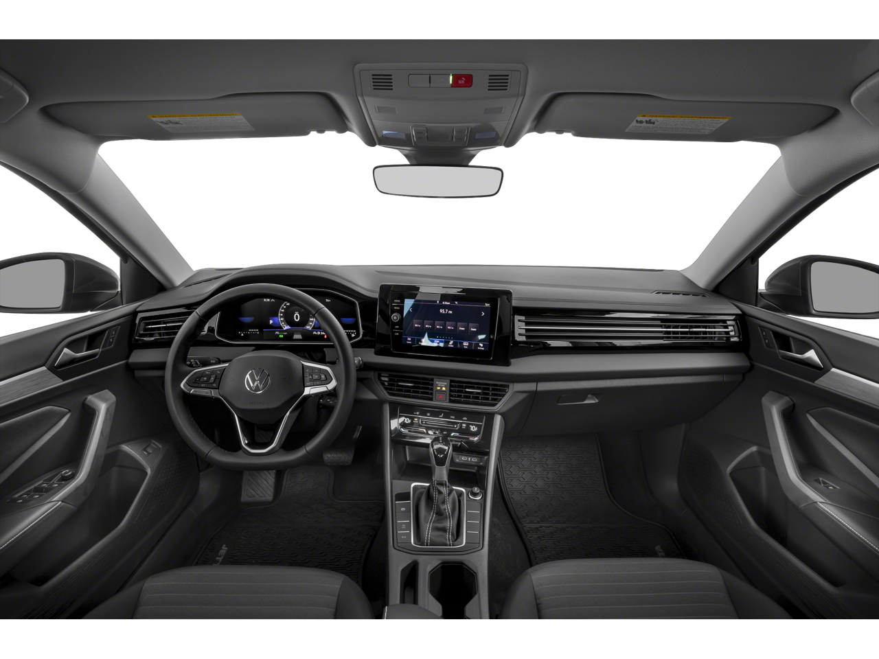 Cloth. This 2026 Volkswagen Jetta 1.5T S in Pyrite Silver Metallic comes with the following features: 1.5L I-4 DI DOHC Turbocharged 8-Speed Automatic with Tiptronic FWD Cloth, 18 Alloy wheels, 4 Speakers, 4-Wheel Disc Brakes, ABS brakes, Active Blind Spot Monitor, Air Conditioning, Auto-dimming Rear-View mirror, Automatic temperature control, Brake assist, Bumpers: body-color, Cloth Seat Trim, Delay-off headlights, Driver door bin, Driver vanity mirror, Dual front impact airbags, Dual front side impact airbags, Electronic Stability Control, Emergency communication system: VW Car-Net Safe & Secure 5-year, Exterior Parking Camera Rear, Front anti-roll bar, Front Bucket Seats, Front Center Armrest, Front dual zone A/C, Front Seats, Front wheel independent suspension, Fully automatic headlights, Heated door mirrors, Illuminated entry, Leather Shift Knob, Leather steering wheel, Low tire pressure warning, Occupant sensing airbag, Outside temperature display, Overhead airbag, Overhead console, Panic alarm, Passenger door bin, Passenger vanity mirror, Power door mirrors, Power steering, Power windows, Radio data system, Radio: MIB3 Composition Color w/8 Touchscreen, Rain sensing wipers, Rear anti-roll bar, Rear reading lights, Rear window defroster, Remote keyless entry, Speed control, Speed-sensing steering, Split folding rear seat, Steering wheel mounted audio controls, Tachometer, Telescoping steering wheel, Tilt steering wheel, Traction control, Trip computer, Variably intermittent wipers, and Wheels: 16 2-Tone Machined Alloy.