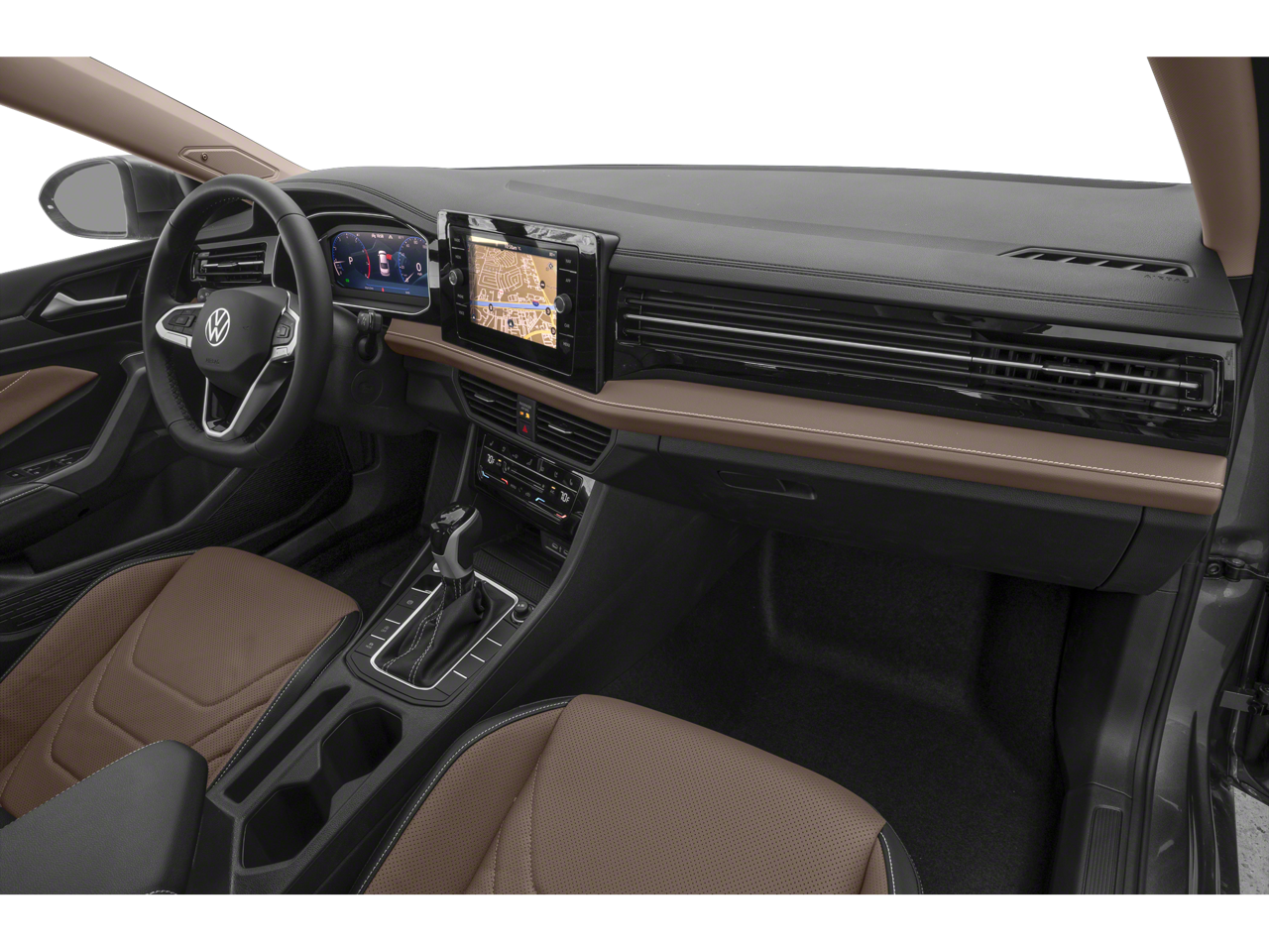 Apple CarPlay & Android Auto, Blind Spot Monitoring, Heated & Cooled Ventilated Front Seats, Grigio/Titan Black Leather. This 2026 Volkswagen Jetta 1.5T SEL in Platinum Gray Metallic comes with the following features: 1.5L I-4 DI DOHC Turbocharged 8-Speed Automatic with Tiptronic FWD Grigio/Titan Black Leather, 18 Alloy wheels, 4-Wheel Disc Brakes, 8 Speakers, ABS brakes, Active Blind Spot Monitor, Air Conditioning, AM/FM radio: SiriusXM with 360L, Auto High-beam Headlights, Auto-dimming Rear-View mirror, Automatic temperature control, Brake assist, Bumpers: body-color, Delay-off headlights, Driver door bin, Driver vanity mirror, Dual front impact airbags, Dual front side impact airbags, Electronic Stability Control, Emergency communication system: VW Car-Net Safe & Secure 5-year, Exterior Parking Camera Rear, Front anti-roll bar, Front Bucket Seats, Front Center Armrest, Front dual zone A/C, Front reading lights, Front wheel independent suspension, Fully automatic headlights, Heated and Actively Ventilated Front Seats, Heated door mirrors, Heated front seats, Heated rear seats, Heated steering wheel, Illuminated entry, Leather Shift Knob, Leather steering wheel, Low tire pressure warning, Memory seat, Navigation System, Occupant sensing airbag, Outside temperature display, Overhead airbag, Overhead console, Panic alarm, Passenger door bin, Passenger vanity mirror, Power door mirrors, Power driver seat, Power moonroof: Panoramic, Power steering, Power windows, Radio data system, Radio: MIB3 Discover Media with 8 Touchscreen Navigation, Rain sensing wipers, Rear anti-roll bar, Rear reading lights, Rear seat center armrest, Rear window defroster, Remote keyless entry, Security system, Speed control, Speed-sensing steering, Split folding rear seat, Steering wheel mounted audio controls, Tachometer, Telescoping steering wheel, Tilt steering wheel, Traction control, Trip computer, Turn signal indicator mirrors, Variably intermittent wipers, Ventilated front seats, Vienna Leather Seat Trim, VW Premium Sound System with Subwoofer, and Wheels: 18 2-Tone Machined Alloy.