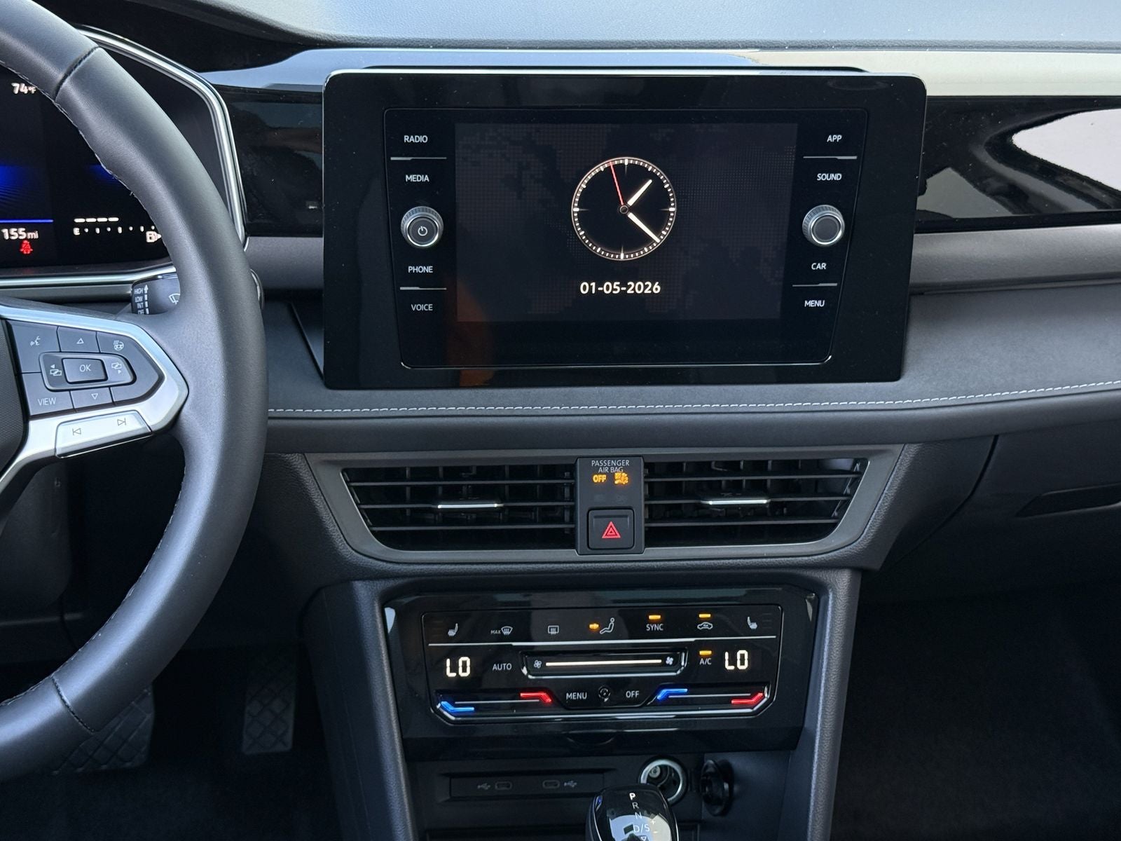 Adaptive Cruise Control, Apple CarPlay & Android Auto, Blind Spot Monitoring, Bluetooth®, Hands-Free, Collision Mitigation Braking System, Heated Steering Wheel, Lane Keep Assist with Lane Centering, Leather-Wrapped Steering Wheel with Controls, Rain-Sensing Windshield Wipers, Rear Window Sunshades, Heated Seats, Monster Mats (all-weather floor mats), 18 Alloy wheels. This 2026 Volkswagen Taos 1.5T SE Black in Deep Black Pearl comes with the following features: 1.5L I4 Turbocharged DOHC 16V LEV3-SULEV30 174hp 8-Speed Automatic with Tiptronic FWD 18 Alloy wheels, 4-Wheel Disc Brakes, 6 Speakers, ABS brakes, Active Blind Spot Monitor, Air Conditioning, AM/FM radio: SiriusXM with 360L, Auto High-beam Headlights, Automatic temperature control, Brake assist, Bumpers: body-color, Cloudtex and Cloth Seating Surfaces, Compass, Delay-off headlights, Driver door bin, Driver vanity mirror, Dual front impact airbags, Dual front side impact airbags, Electronic Stability Control, Emergency communication system: VW Car-Net Safe & Secure 5-year, Exterior Parking Camera Rear, Front anti-roll bar, Front Bucket Seats, Front Center Armrest, Front dual zone A/C, Front reading lights, Front Strut Rear Torsion Beam Suspension, Front wheel independent suspension, Fully automatic headlights, Heated door mirrors, Heated Front Bucket Seats, Heated front seats, Heated steering wheel, Illuminated entry, Leather Shift Knob, Low tire pressure warning, Occupant sensing airbag, Outside temperature display, Overhead airbag, Overhead console, Panic alarm, Passenger door bin, Passenger vanity mirror, Power door mirrors, Power driver seat, Power moonroof, Power steering, Power windows, Radio data system, Radio: MIB3 Composition Media AM/FM/HD, Rain sensing wipers, Rear anti-roll bar, Rear seat center armrest, Rear window defroster, Rear window wiper, Remote keyless entry, Security system, Speed control, Speed-sensing steering, Split folding rear seat, Spoiler, Steering wheel mounted audio controls, Tachometer, Telescoping steering wheel, Tilt steering wheel, Traction control, Trip computer, Variably intermittent wipers, and Wheels: 18 Black Painted Alloy.