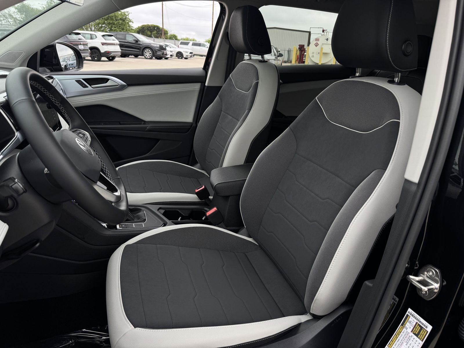 This 2026 Volkswagen Taos 1.5T SE in Deep Black Pearl comes with the following features: 1.5L I4 Turbocharged DOHC 16V LEV3-SULEV30 174hp 8-Speed Automatic with Tiptronic FWD 18 Alloy wheels, 4-Wheel Disc Brakes, 6 Speakers, ABS brakes, Active Blind Spot Monitor, Air Conditioning, AM/FM radio: SiriusXM with 360L, Auto High-beam Headlights, Automatic temperature control, Brake assist, Bumpers: body-color, Cloudtex and Cloth Seating Surfaces, Compass, Delay-off headlights, Driver door bin, Driver vanity mirror, Dual front impact airbags, Dual front side impact airbags, Electronic Stability Control, Emergency communication system: VW Car-Net Safe & Secure 5-year, Exterior Parking Camera Rear, Front anti-roll bar, Front Bucket Seats, Front Center Armrest, Front dual zone A/C, Front reading lights, Front Strut Rear Torsion Beam Suspension, Front wheel independent suspension, Fully automatic headlights, Heated door mirrors, Heated Front Bucket Seats, Heated front seats, Heated steering wheel, Illuminated entry, Leather Shift Knob, Low tire pressure warning, Occupant sensing airbag, Outside temperature display, Overhead airbag, Overhead console, Panic alarm, Passenger door bin, Passenger vanity mirror, Power door mirrors, Power driver seat, Power steering, Power windows, Radio data system, Radio: MIB3 Composition Media AM/FM/HD, Rain sensing wipers, Rear anti-roll bar, Rear seat center armrest, Rear window defroster, Rear window wiper, Remote keyless entry, Security system, Speed control, Speed-sensing steering, Split folding rear seat, Spoiler, Steering wheel mounted audio controls, Tachometer, Telescoping steering wheel, Tilt steering wheel, Traction control, Trip computer, Variably intermittent wipers, and Wheels: 18 2-Tone Machined Alloy.