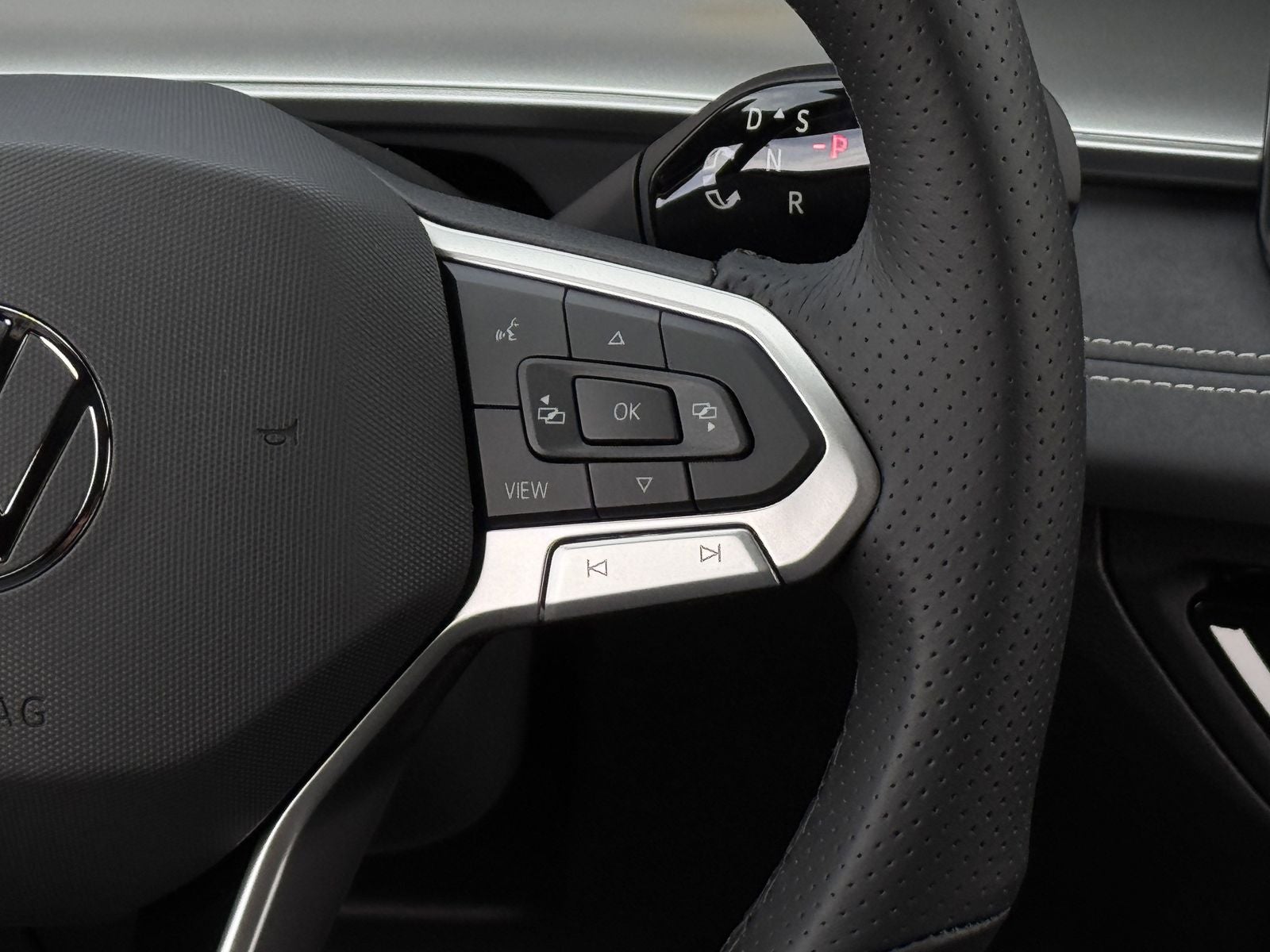This 2026 Volkswagen Tiguan 2.0T SE R-Line Black in Platinum Gray Metallic comes with the following features: 2.0L TSI DOHC 8-Speed Automatic FWD 18 Alloy wheels, 4-Wheel Disc Brakes, 4-Wheel Independent Suspension, 7 Speakers, ABS brakes, Air Conditioning, AM/FM radio: SiriusXM with 360L, Auto High-beam Headlights, Auto-dimming Rear-View mirror, Automatic temperature control, Brake assist, Bumpers: body-color, Compass, Delay-off headlights, Driver door bin, Driver vanity mirror, Dual front impact airbags, Dual front side impact airbags, Electronic Stability Control, Emergency communication system, Exterior Parking Camera Rear, Four wheel independent suspension, Front anti-roll bar, Front Bucket Seats, Front Center Armrest, Front dual zone A/C, Front reading lights, Fully automatic headlights, Heads-Up Display, Heated door mirrors, Heated Front Seats, Heated front seats, Illuminated entry, Knee airbag, Leather Shift Knob, Leather steering wheel, Low tire pressure warning, Occupant sensing airbag, Outside temperature display, Overhead airbag, Overhead console, Panic alarm, Passenger door bin, Passenger vanity mirror, Perforated V-Tex Leatherette Seating Surfaces, Power door mirrors, Power driver seat, Power Liftgate, Power moonroof: Panoramic, Power steering, Power windows, Radio data system, Radio: MIB4 Composition Media Touchscreen with AM/FM, Rain sensing wipers, Rear anti-roll bar, Rear reading lights, Rear seat center armrest, Rear side impact airbag, Rear window defroster, Rear window wiper, Remote keyless entry, Security system, Speed control, Speed-sensing steering, Split folding rear seat, Spoiler, Sport steering wheel, Steering wheel mounted audio controls, Tachometer, Telescoping steering wheel, Tilt steering wheel, Traction control, Trip computer, Turn signal indicator mirrors, Variably intermittent wipers, and Wheels: 20 Black Painted Alloy.