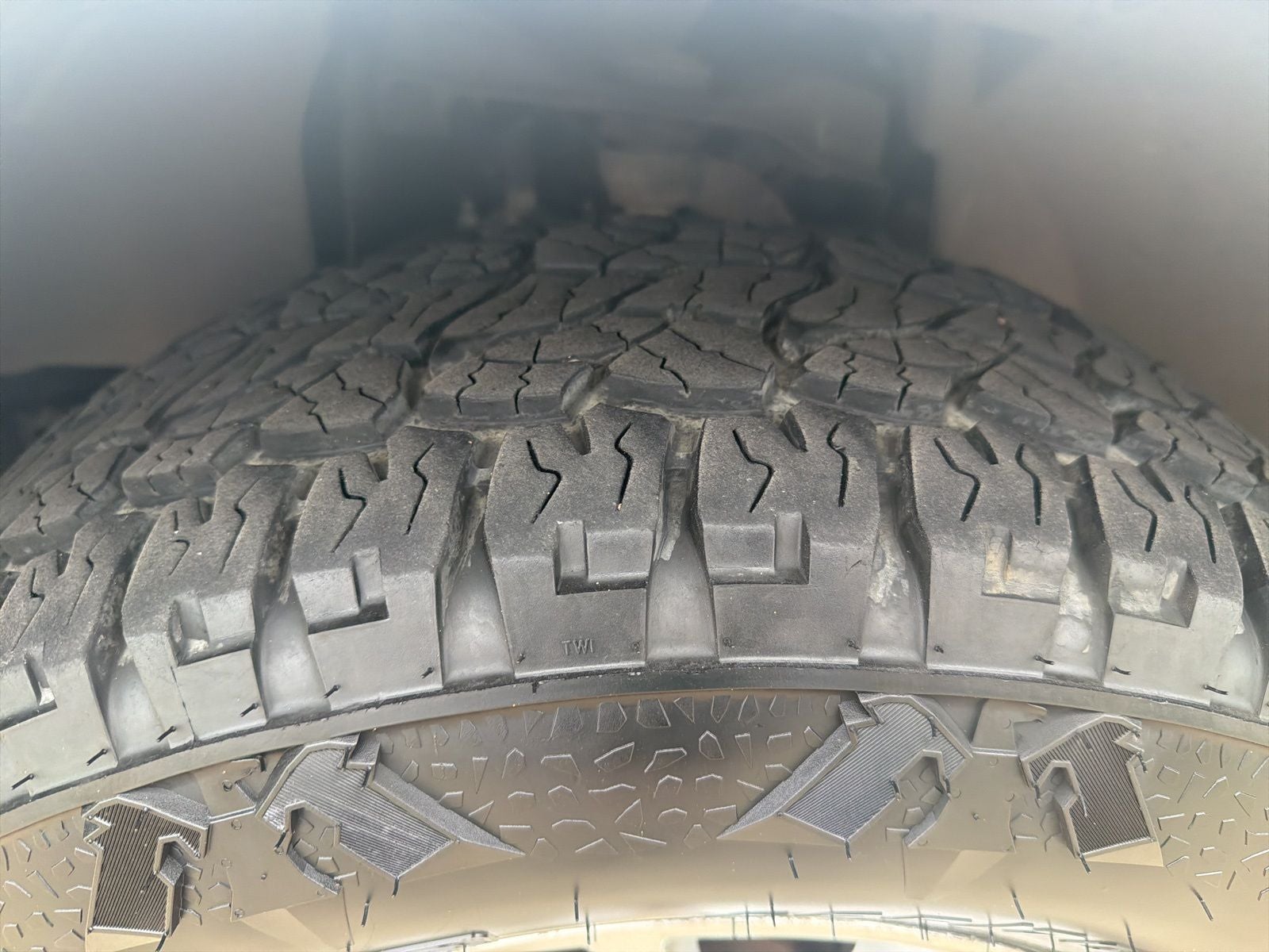 - Neumático de repuesto tamaño natural con soporte debajo de la carrocería con manivela