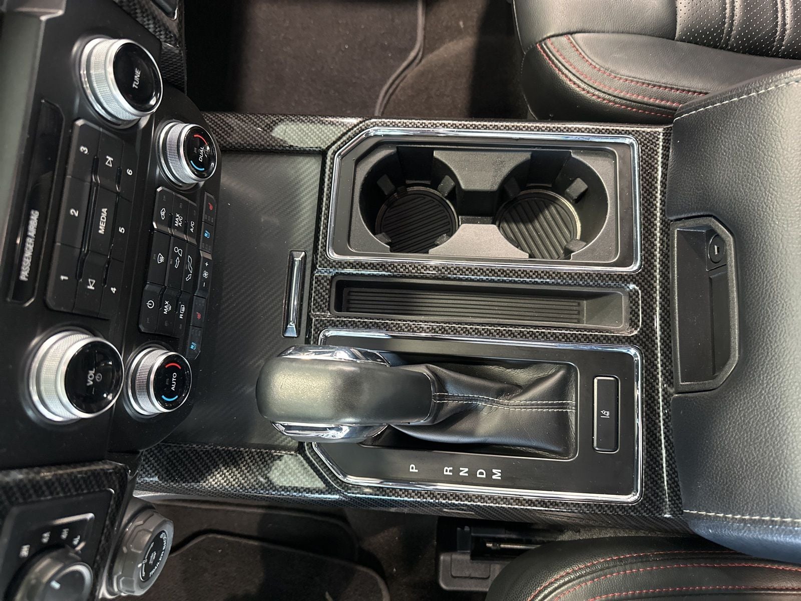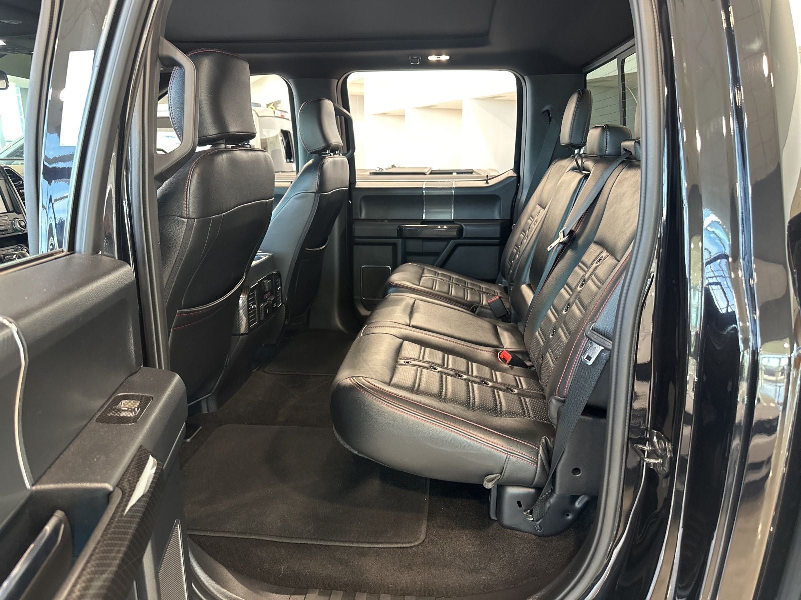 The attention to detail is evident throughout this F-150 Shelby. The sleek black exterior, complemented by the chrome accents and Shelby badging, exudes a bold and commanding presence. Step inside and you'll be greeted by the luxurious leather-trimmed bucket seats, offering both comfort and style.
