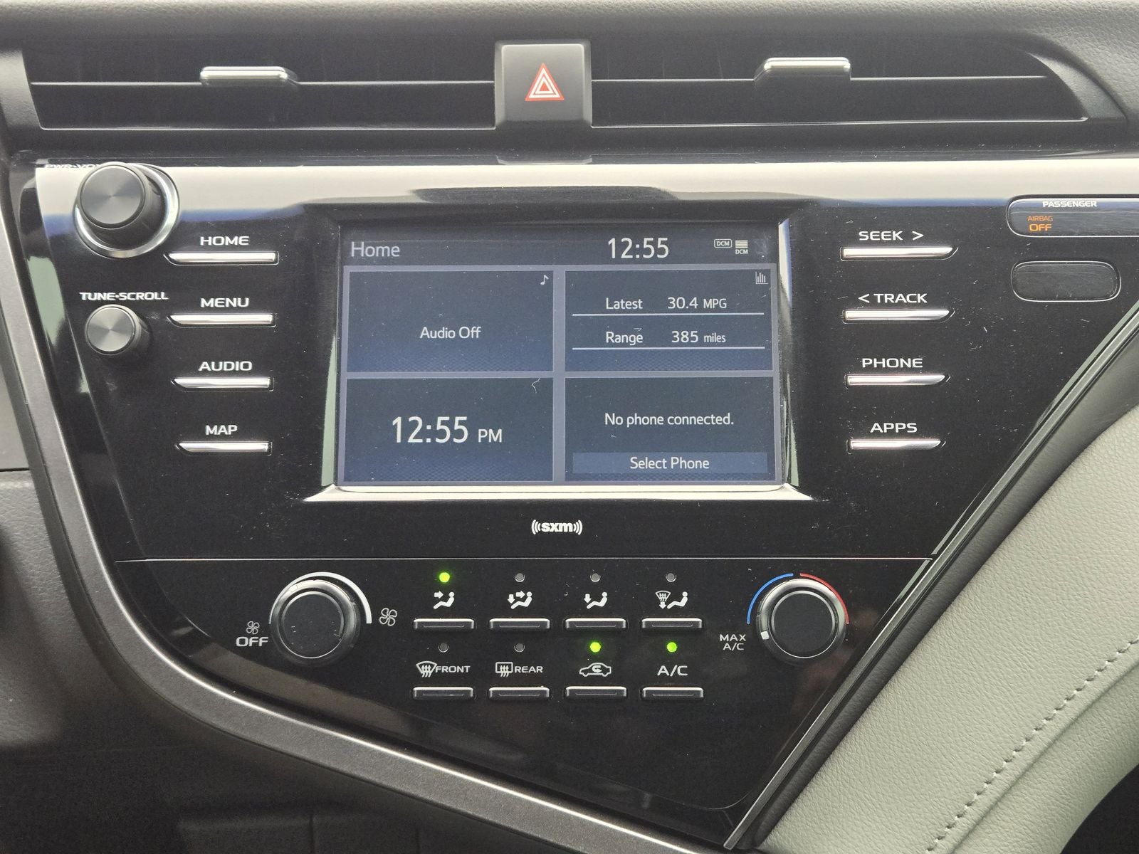 This 2020 Toyota Camry comes nicely equipped with Black Cloth, 4-Wheel Disc Brakes, 6 Speakers, 7.5J x 17 Alloy Wheels, ABS brakes, Air Conditioning, Alloy wheels, AM/FM radio: SiriusXM, Apple CarPlay/Android Auto, Auto High-beam Headlights, Brake assist, Bumpers: body-color, Delay-off headlights, Driver door bin, Driver vanity mirror, Dual front impact airbags, Dual front side impact airbags, Electronic Stability Control, Emergency communication system: Safety Connect with 1-year trial, Exterior Parking Camera Rear, Fabric Seat Trim, Four wheel independent suspension, Front anti-roll bar, Front Bucket Seats, Front Center Armrest, Front reading lights, Fully automatic headlights, Illuminated entry, Knee airbag, Low tire pressure warning, Occupant sensing airbag, Outside temperature display, Overhead airbag, Overhead console, Panic alarm, Passenger door bin, Passenger vanity mirror, Power door mirrors, Power driver seat, Power steering, Power windows, Radio data system, Radio: AM/FM Audio System, Rear anti-roll bar, Rear reading lights, Rear seat center armrest, Rear side impact airbag, Rear window defroster, Remote keyless entry, Security system, Speed control, Speed-sensing steering, Split folding rear seat, Steering wheel mounted audio controls, Tachometer, Telescoping steering wheel, Tilt steering wheel, Traction control, Trip computer, and Variably intermittent wipers.