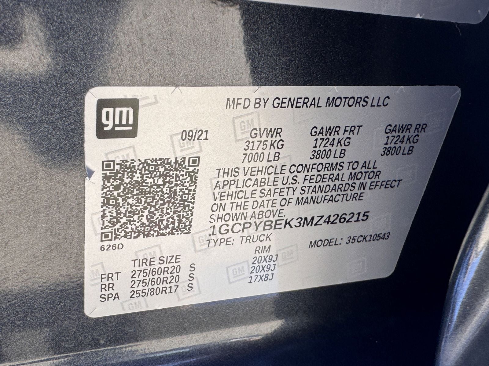 - GVWR, 7000 lb (3175 kg) (Requiere modelo 4WD con cabina doble o cabina doble y motor EcoTec3 de 3175.3 litros V6 (LV3) o motor Turbo de 4.7 litros (L3B).