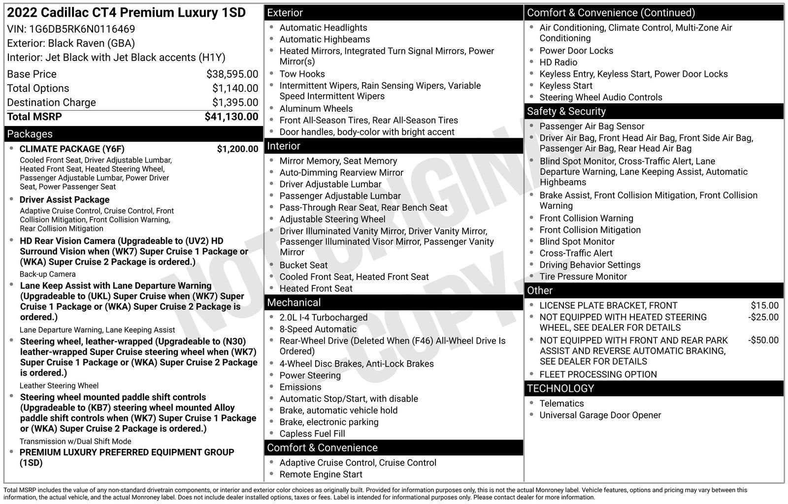 This CT4 is Cadillac Certified Pre-Owned, meaning it has completed a comprehensive factory inspection and includes additional ownership protection.