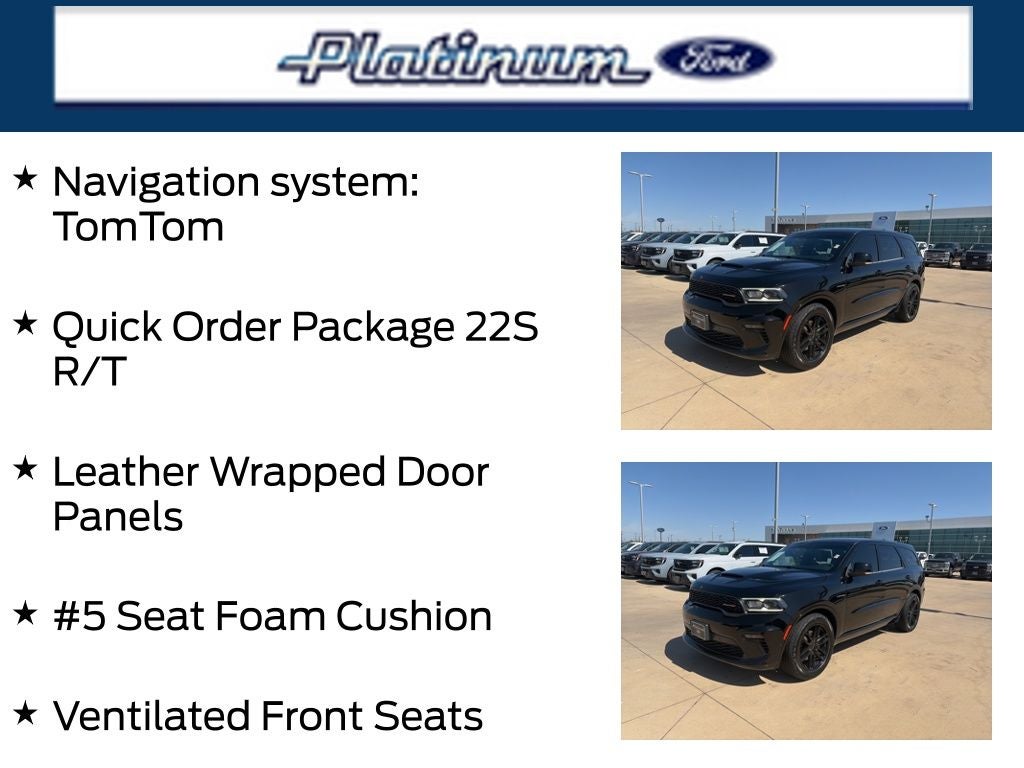 The interior of this Durango R/T is a masterpiece of craftsmanship and technology. Luxurious leather-trimmed bucket seats provide exceptional comfort and support, while the ventilated front seats and leather-wrapped door panels add an extra touch of refinement. The intuitive Uconnect 5 infotainment system with a 10.1-inch display keeps you connected and entertained, with seamless integration of your favorite apps through Apple CarPlay and Android Auto.
