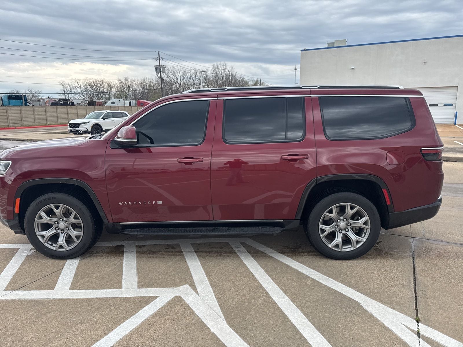 This 2022 Jeep Wagoneer comes nicely equipped with Quick Order Package 22J, 10 Speakers, 3.21 Rear Axle Ratio, 3rd row seats: bench, 4-Wheel Disc Brakes, ABS brakes, Adjustable pedals, Air Conditioning, Alloy wheels, AM/FM radio: SiriusXM with 360L, Anti-whiplash front head restraints, Audio memory, Auto-dimming door mirrors, Auto-dimming Rear-View mirror, Auto-leveling suspension, Automatic temperature control, Brake assist, Bumpers: body-color, Compass, Delay-off headlights, Driver door bin, Driver vanity mirror, Driver's Seat Mounted Armrest, Dual front impact airbags, Dual front side impact airbags, Electronic Stability Control, Exterior Parking Camera Rear, Four wheel independent suspension, Front anti-roll bar, Front Bucket Seats, Front Center Armrest w/Storage, Front dual zone A/C, Front fog lights, Front reading lights, Fully automatic headlights, Garage door transmitter, Genuine wood console insert, Genuine wood dashboard insert, Genuine wood door panel insert, Heated door mirrors, Heated front seats, Heated steering wheel, Illuminated entry, Knee airbag, Leather Trimmed Bucket Seats, Low tire pressure warning, Memory seat, Navigation System, Normal Duty Suspension, Occupant sensing airbag, Outside temperature display, Overhead airbag, Overhead console, Panic alarm, Passenger door bin, Passenger seat mounted armrest, Passenger vanity mirror, Pedal memory, Power adjustable front head restraints, Power door mirrors, Power driver seat, Power Liftgate, Power passenger seat, Power steering, Power windows, Radio data system, Radio: Uconnect 5 Nav w/10.1 Display, Rain sensing wipers, Rear air conditioning, Rear anti-roll bar, Rear dual zone A/C, Rear reading lights, Rear seat center armrest, Rear window defroster, Rear window wiper, Reclining 3rd row seat, Remote keyless entry, Security system, Speed control, Speed-sensing steering, Speed-Sensitive Wipers, Split folding rear seat, Steering wheel memory, Steering wheel mounted audio controls, Tachometer, Telescoping steering wheel, Tilt steering wheel, Traction control, Trip computer, Turn signal indicator mirrors, Variably intermittent wipers, Ventilated front seats, Voltmeter, and Wheels: 20 x 9.0 Aluminum Base Finish.