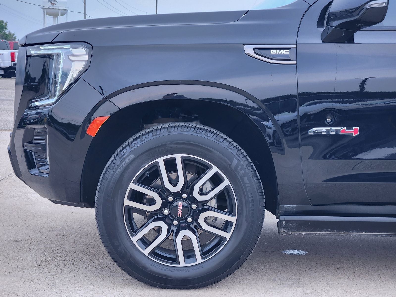 This 2023 GMC Yukon AT4 in Onyx Black comes with the following features: EcoTec3 5.3L V8 10-Speed Automatic with Overdrive 4WD License Plate Front Mounting Package, Preferred Equipment Group 4SB (2 Presets For Outside Rearview Mirrors, 3 Years of GMC Connected Services, 3 Years of OnStar Safety & Security, 3rd Row 60/40 Power-Folding Split-Bench Seat, Black Roof-Mounted Luggage Rack Side Rails, Bose 9-Speaker Stereo Audio System Feature, Bright Front & Rear Door Sill Plates, Front High-Approach Angle Fascia, Hands-Free Power Programmable Rear Liftgate, Heated & Ventilated Driver & Front Passenger Seats, Heated 2nd Row Outboard Position Seats, Heated Driver & Front Passenger Seats, Heated Steering Wheel, Heavy-Duty Air Filter, Hill Descent Control, Inside Rear-View Auto-Dimming Mirror, Outside Heated Power-Adjustable Mirrors, Power Release 2nd Row 60/40 Split-Folding Bench Seat, Power Tilt & Telescopic Steering Column, Red Horizontal-Mounted Recovery Hooks, Safety Alert Seat, Universal Home Remote, and Wireless Charging), Yukon AT4, Ford Blue Advantage: Blue Certified Certified, 4D Sport Utility, EcoTec3 5.3L V8, 10-Speed Automatic with Overdrive, 4WD, Onyx Black, Jet Black Leather, 3 Years of OnStar Safety & Security (DISC), 3.23 Rear Axle Ratio, 3rd row seats: split-bench, 4-Wheel Disc Brakes, 9 Speakers, ABS brakes, Adaptive suspension, Air Conditioning, Alloy wheels, AM/FM radio: SiriusXM with 360L, AM/FM Stereo, Apple CarPlay/Android Auto, Auto High-beam Headlights, Auto-dimming door mirrors, Auto-dimming Rear-View mirror, Auto-leveling suspension, Automatic Emergency Braking, Automatic temperature control, Brake assist, Bumpers: body-color, Compass, Delay-off headlights, Driver door bin, Driver vanity mirror, Dual front impact airbags, Dual front side impact airbags, Dual-Pane Panoramic Power Sunroof, Electronic Stability Control, Emergency communication system: OnStar and GMC connected services capable, Following Distance Indicator, Forward Collision Alert, Four wheel independent suspension, Front & Rear Park Assist, Front anti-roll bar, Front Bucket Seats, Front Center Armrest, Front dual zone A/C, Front fog lights, Front Pedestrian Braking, Front reading lights, Fully automatic headlights, Garage door transmitter, Heated door mirrors, Heated front seats, Heated rear seats, Heated steering wheel, Illuminated entry, IntelliBeam Automatic High Beam On/Off, Lane Change Alert w/Side Blind Zone Alert, Lane Keep Assist w/Lane Departure Warning, Low tire pressure warning, Magnetic Ride Control Suspension, Memory seat, Navigation System, Occupant sensing airbag, Outside temperature display, Overhead airbag, Overhead console, Panic alarm, Passenger door bin, Passenger vanity mirror, Perforated Leather Seating Surfaces, Power door mirrors, Power driver seat, Power Liftgate, Power passenger seat, Power Release 2nd Row Bucket Seats, Power steering, Power windows, Power-Retractable Assist Steps, Rain sensing wipers, Rear air conditioning, Rear anti-roll bar, Rear Cross Traffic Alert, Rear reading lights, Rear seat center armrest, Rear window defroster, Rear window wiper, Remote keyless entry, Roof rack: rails only, Security system, SiriusXM w/360L, Speed control, Speed-sensing steering, Split folding rear seat, Spoiler, Steering wheel memory, Steering wheel mounted audio controls, Tachometer, Telescoping steering wheel, Tilt steering wheel, Traction control, Trip computer, Turn signal indicator mirrors, Variably intermittent wipers, Ventilated front seats, Voltmeter, and Wheels: 20 x 9 6-Spoke Machined Aluminum. Certified. Odometer is 16014 miles below market average!