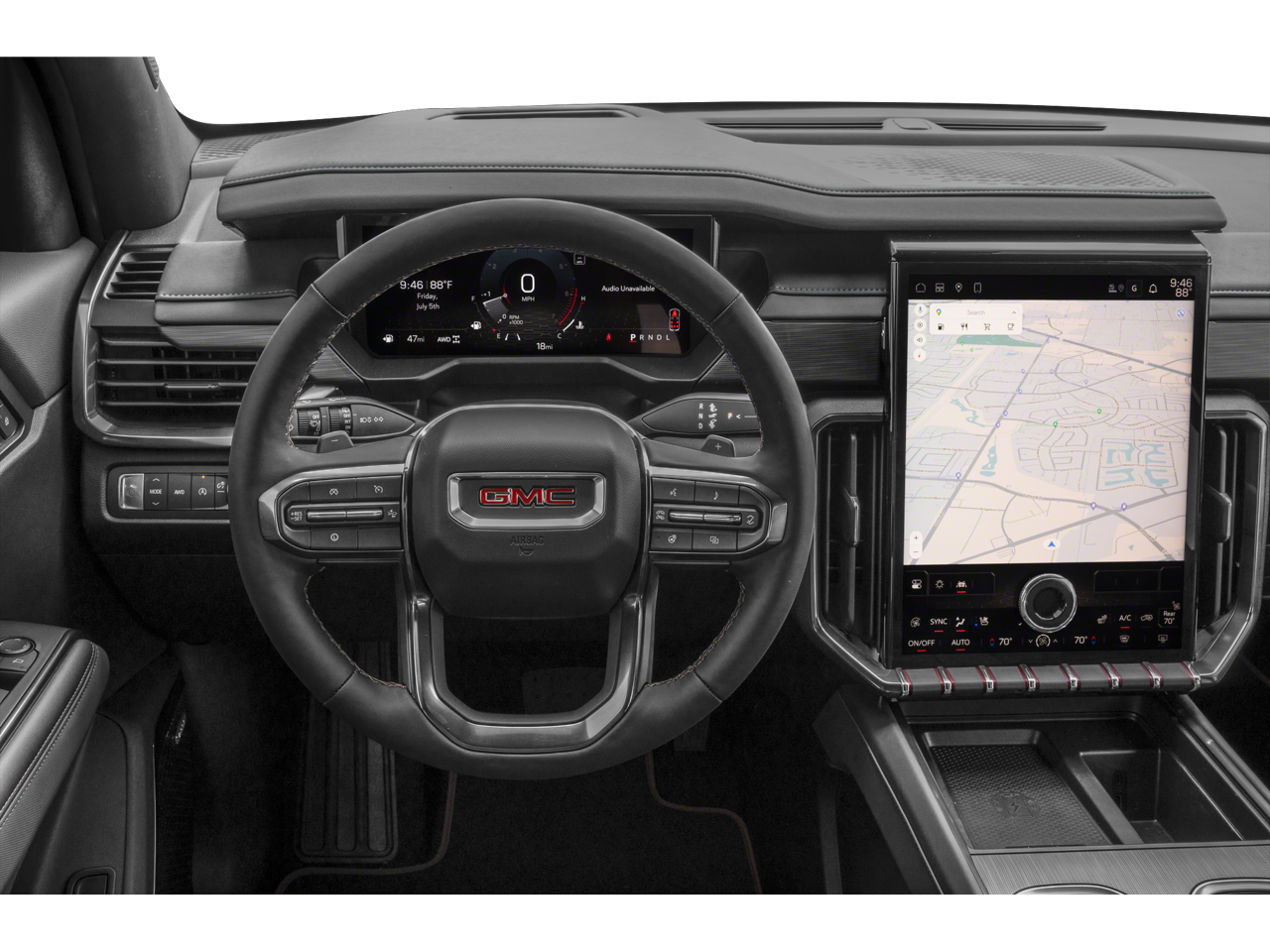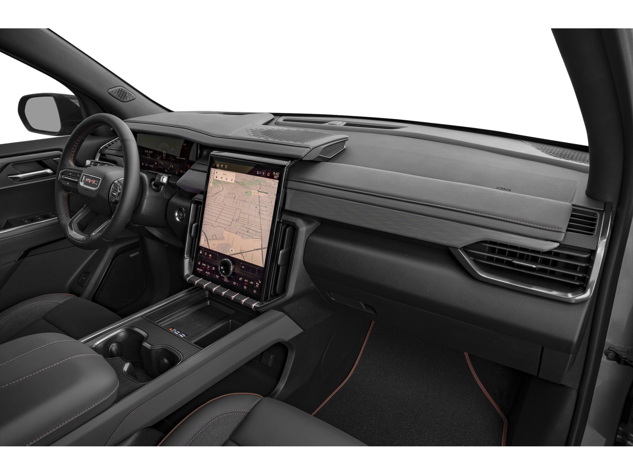 - 15" diagonal Premium GMC Infotainment System with high contrast display, with Google built-in compatibility, including navigation capability, color touch-screen, multi-touch display, connected apps, personalized provides for each driver's settings, Natural Voice Recognition and Phone Integration for Wireless Apple CarPlay/Wireless Android Auto for compatible phones